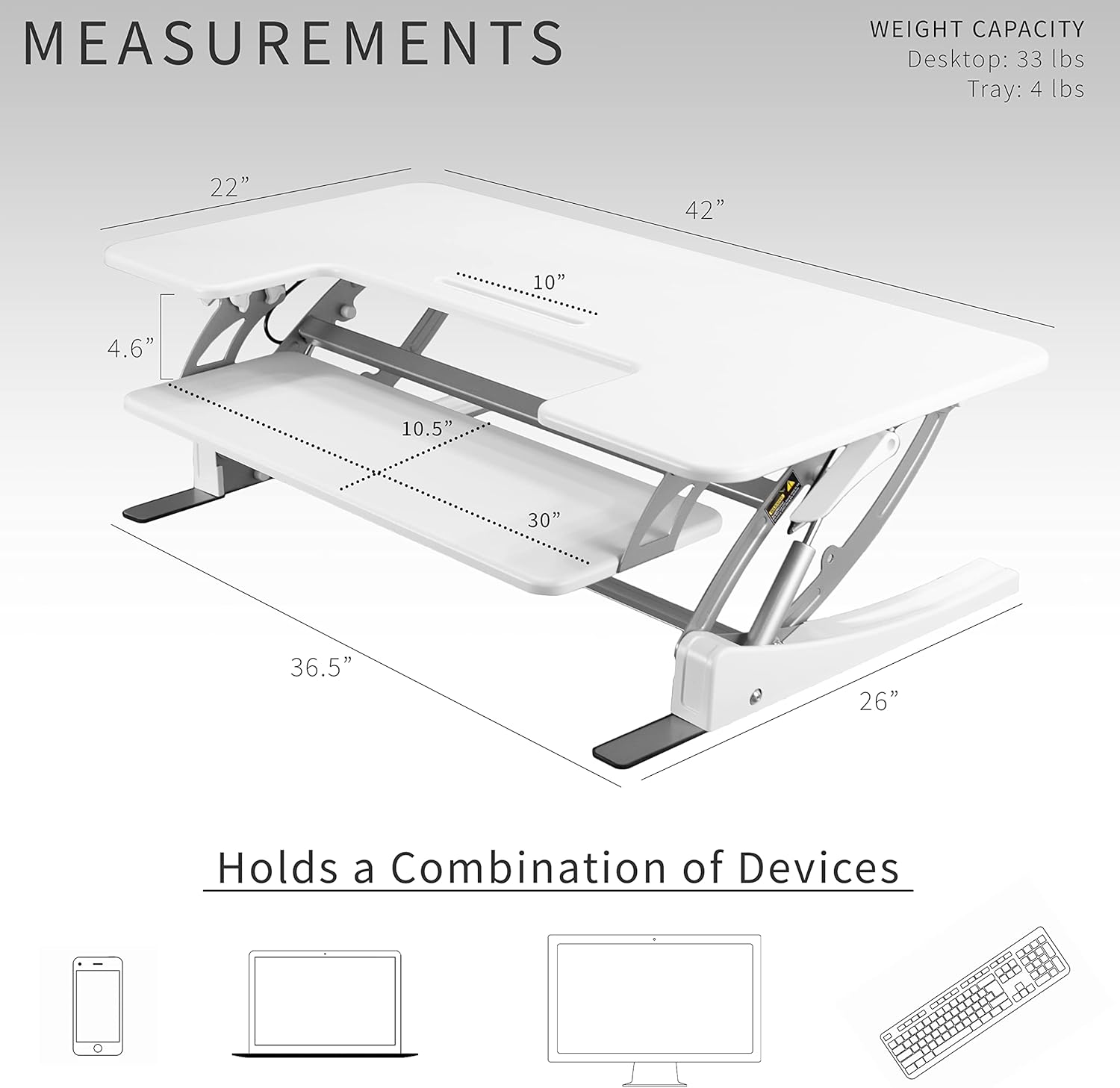 VIVO 42 inch Height Adjustable Stand Up Desk Converter, V Series, Quick Sit to Stand Tabletop Dual Monitor Riser Workstation, White, DESK-V000VLW