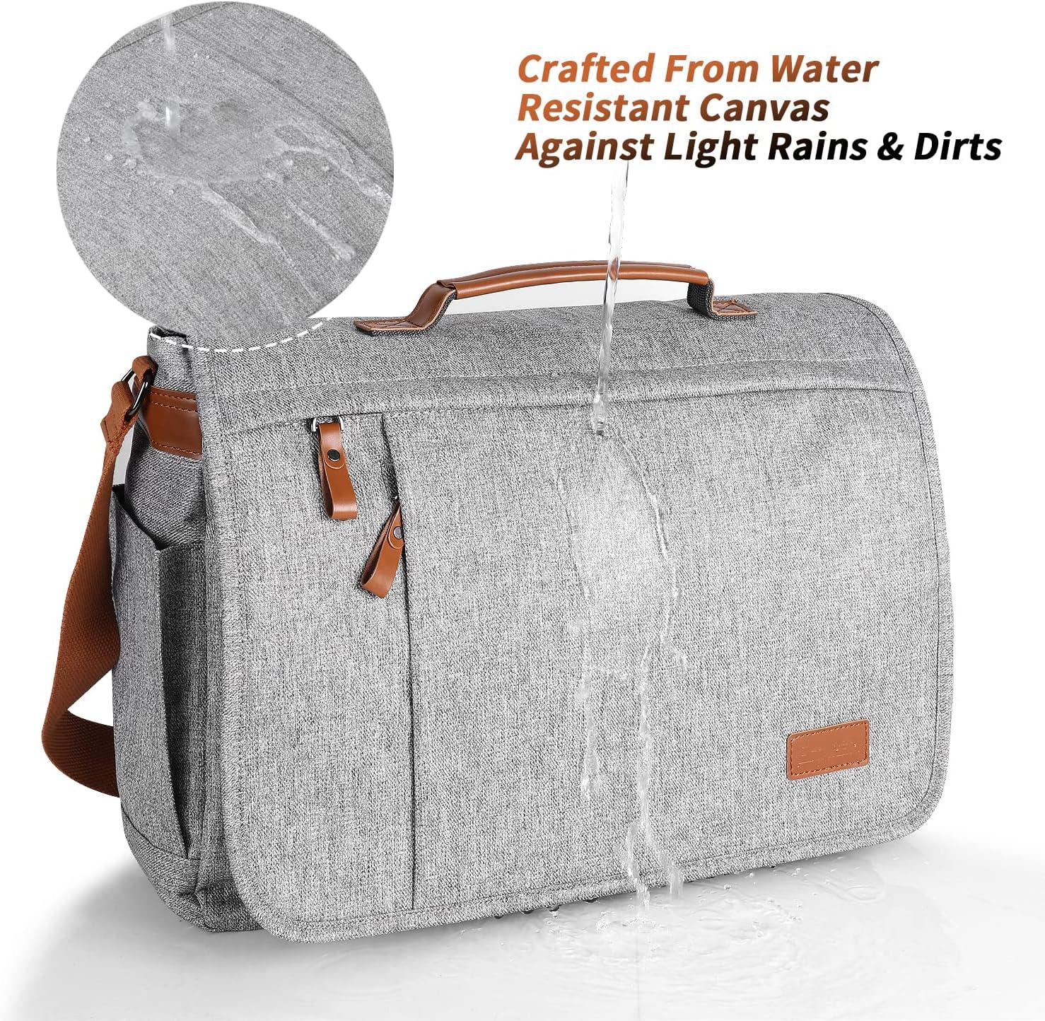ESTARER Messenger Bag 17-17.3 Inch, Men's Computer Bag Water-resistant Canvas, Laptop Shoulder Bag for Travel Work College, Light Grey