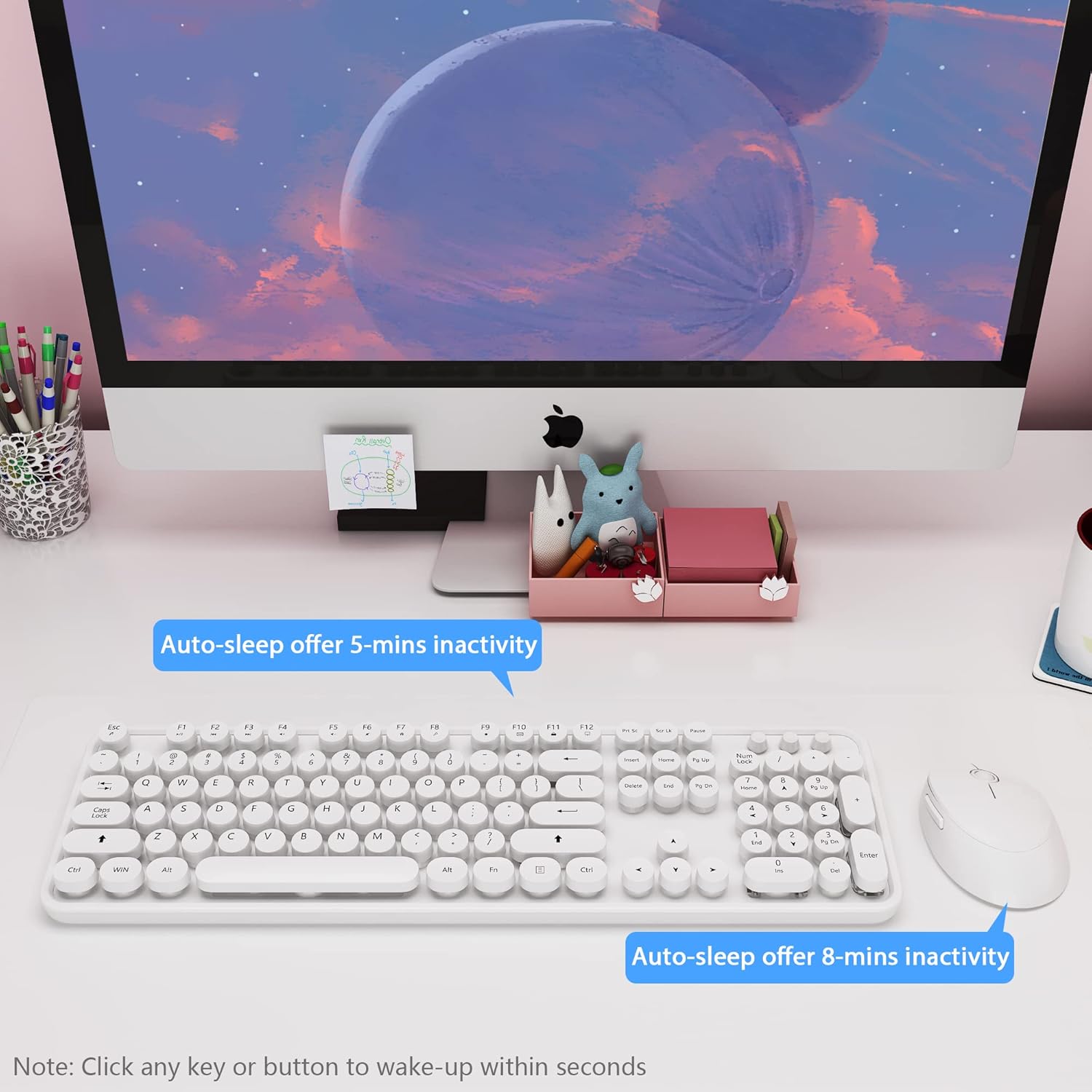- RETRO ROUND KEYCAPS white color keyboard and mouse wireless with vintage typewriter-inspired rounded keycaps, gives you the most comfortable typing experience and adds some much needed spunk to your desk