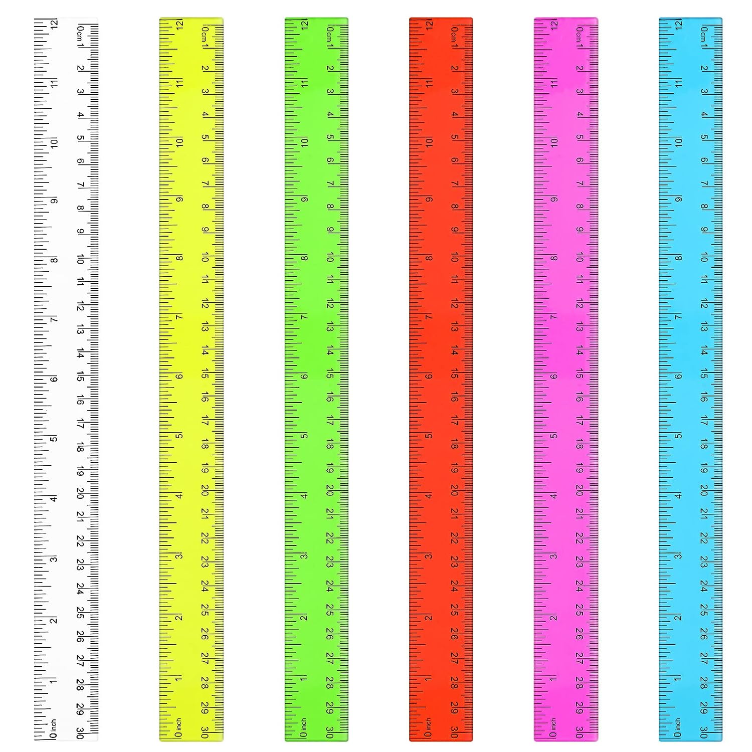 Zonon 30 Pcs 12 Inch Plastic Ruler Assorted Colors Ruler Bulk with Centimeters Millimeter and Inches Rulers First Day of School Gift for Kids School Classroom Office Supplies(Bright Color,Plastic)