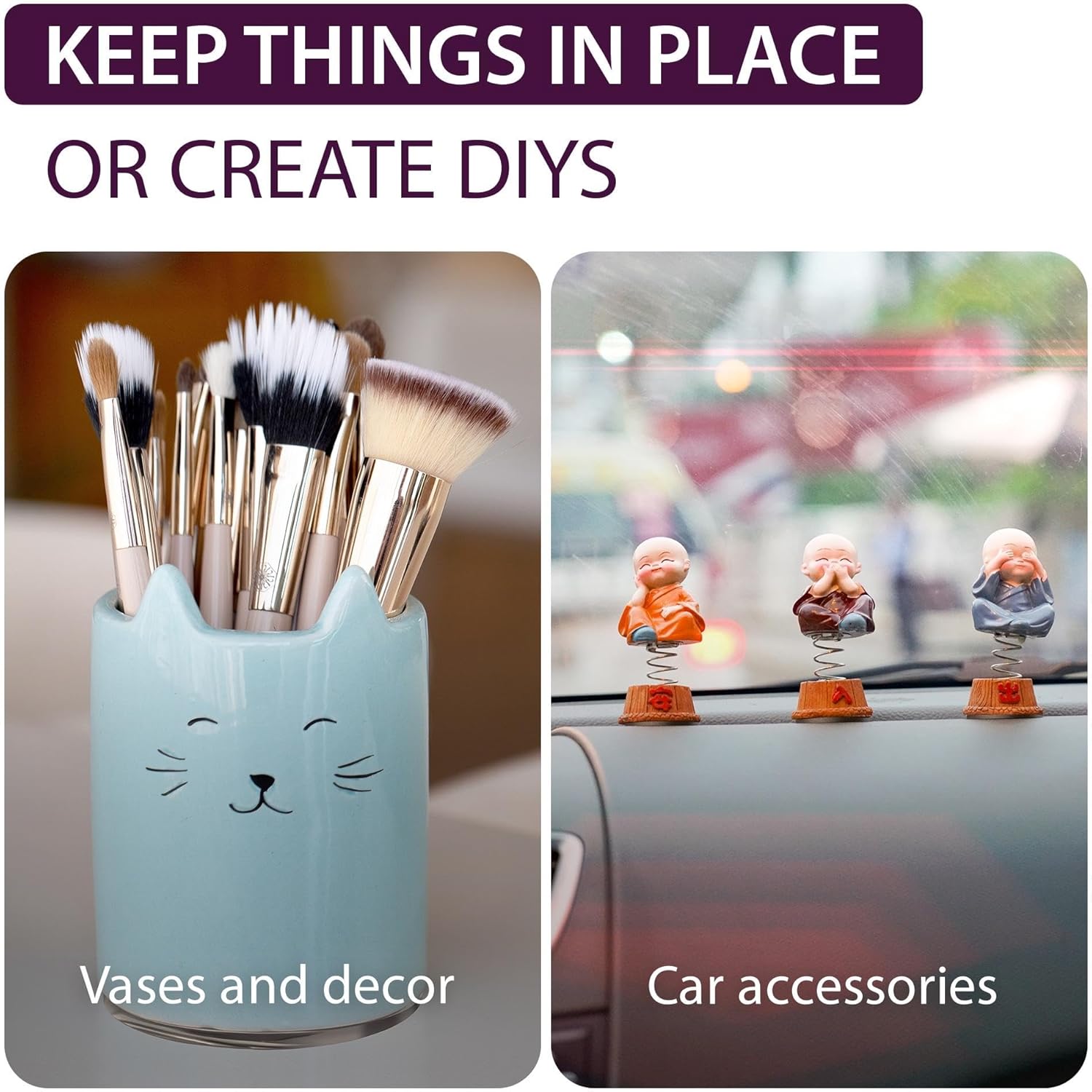 - 🦎 REMOVABLE & TRACELESS: sticky tack putty is safe & effortless in use. These self adhesive dots have convenient size & shape, easily cuttable, extra sticky and leave no marks or residue upon removal. Tacky putty is ready for immediate use - grab the needed number of clear sticky dots, remove protective film and start using putty for all your needs!