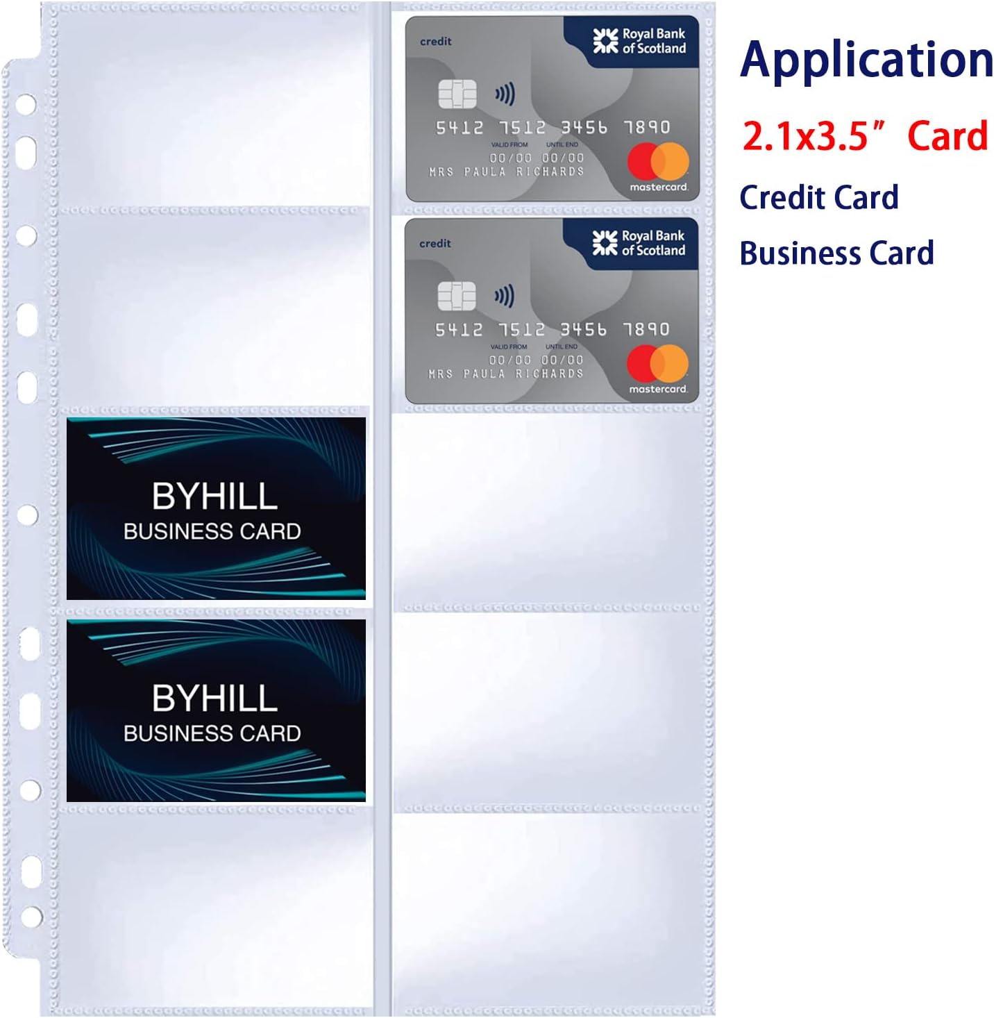 - Size and Application- These business card pages are 8.6x11.4” and the slot size is 3.7x2.2”. They are perfect for organizing standard business card and credit card. And they can fit any standard 2/3/4 ring binder