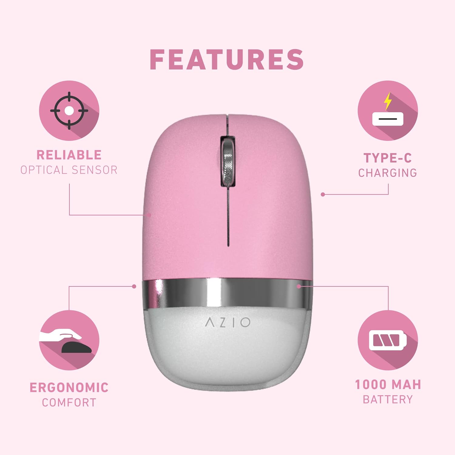 - Stylish pink and silver wireless optical mouse by AZIO