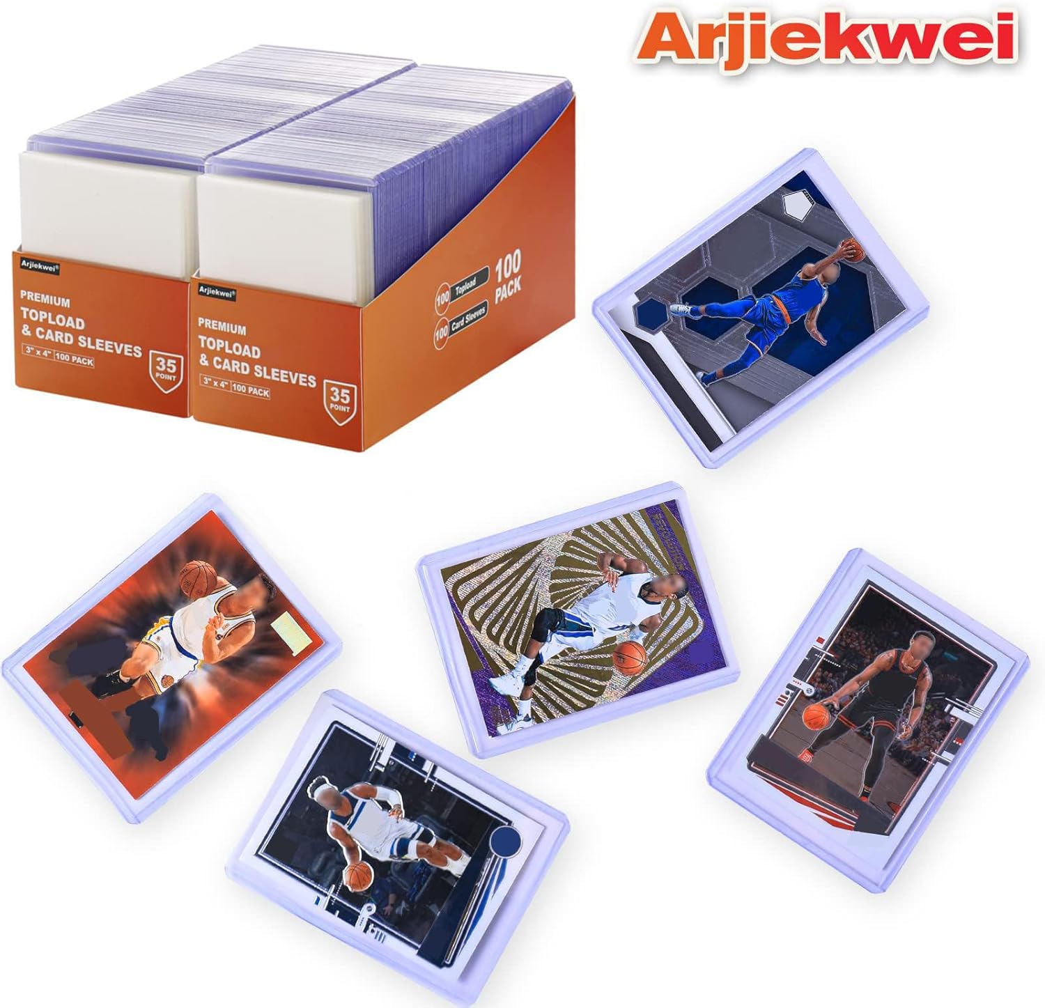 400 Card Sleeves Top Loaders for Cards, Arjiekwei 3"X4" Baseball Cards Protectors Hard Plastic, Premium Toploaders Holder for Trading Sports Football Game Card(200 Top Loaders + 200 Penny Sleeves)