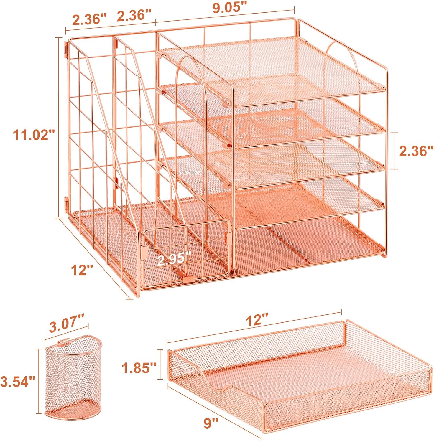 - 【Space Saving】All office document folders would be organized by the vertical file holder. The paper tray organizer is very suitable for storing books, magazines, letters, and A4 paper. The drawer organizer and hanging pen holder enough accommodate all office supply accessories, such as pens, pencils, scissors, and so on. Perfect Size: 13.8*11*12inch.