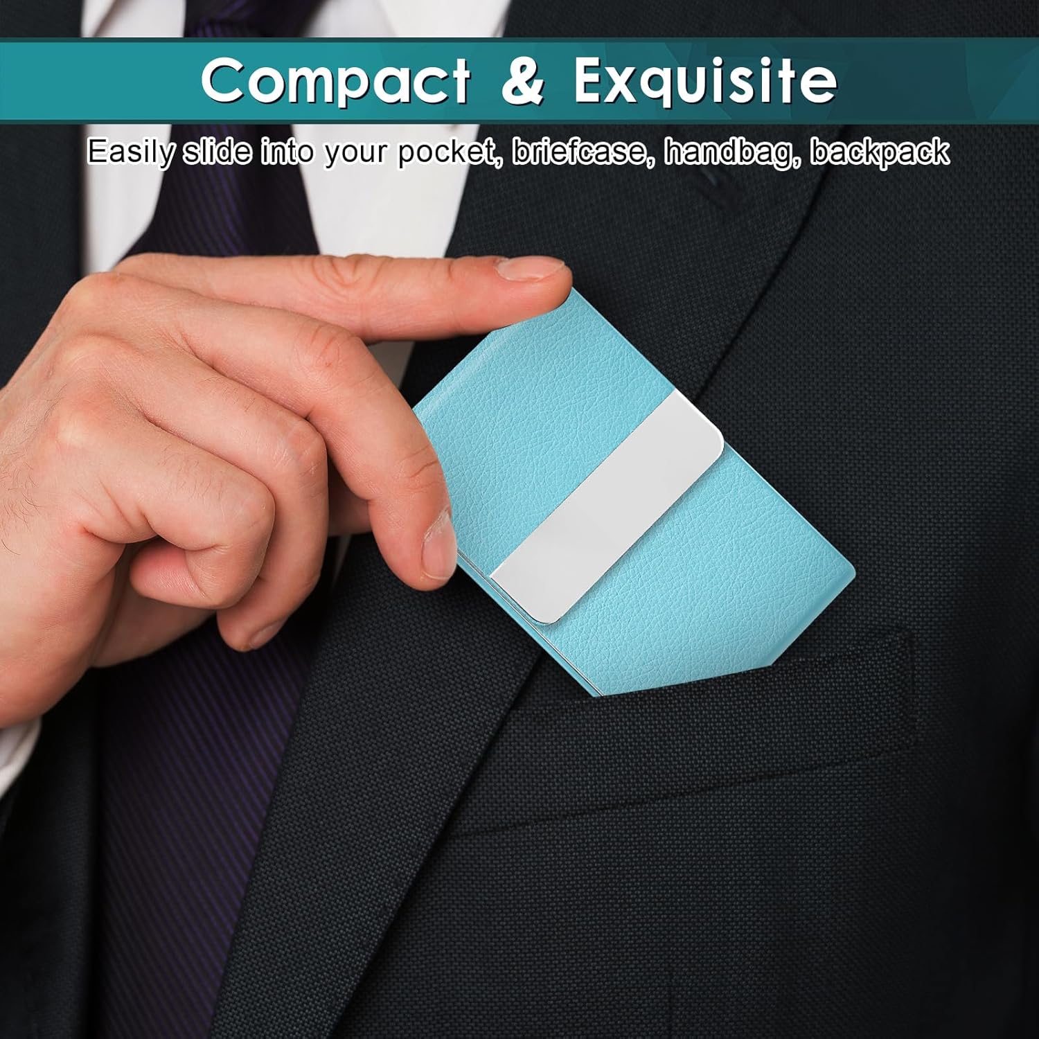 - Material: Our business card holder made of luxury PU leather and high quality Stainless Steel. It has a good solid construction, use longer.