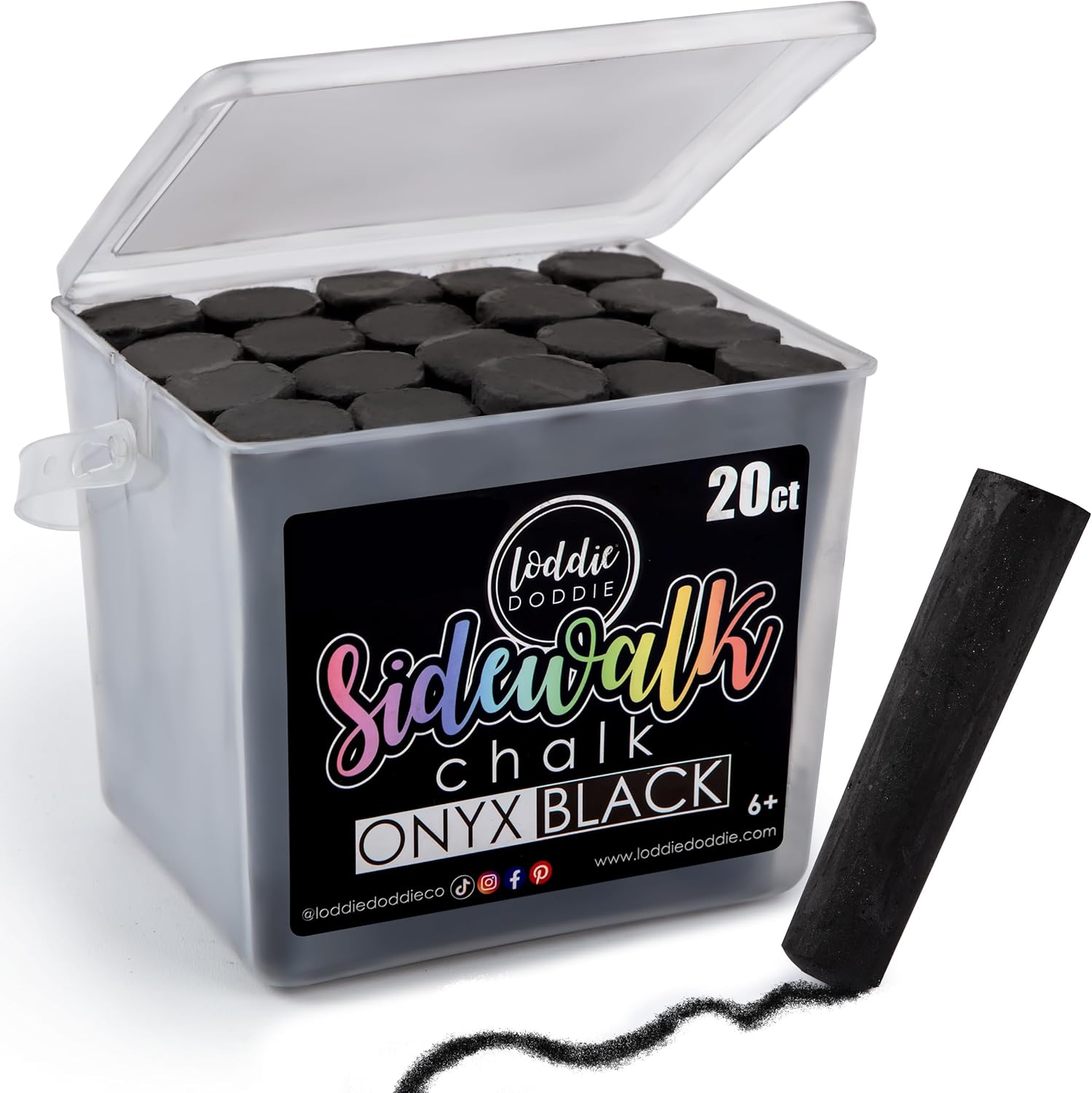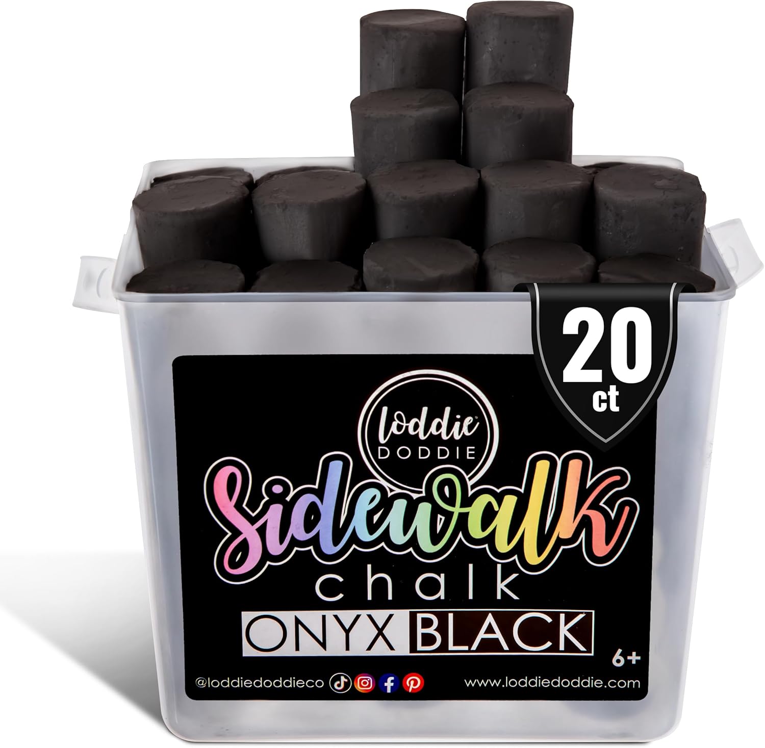 Loddie Doddie Black Sidewalk Chalk Bucket - 20 Count Jumbo Sticks Non-Toxic - Sidewalk Chalk For Kids & Outdoor Activities