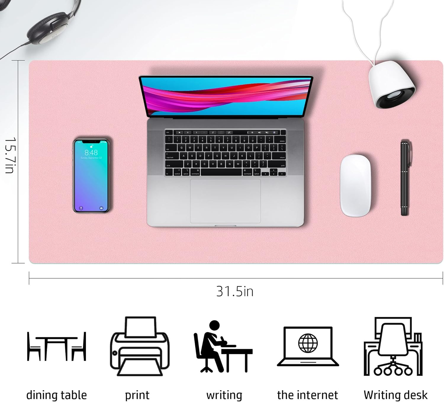 Desk Mat Large Protector Pad - Multifunctional Dual-Sided Office Desk Pad,Smooth Surface Soft Mouse Pad, Waterproof Desk Mat for Desktop, Pu Leather Desk Cover for Office/Home(Pink, 31.5" x 15.7")