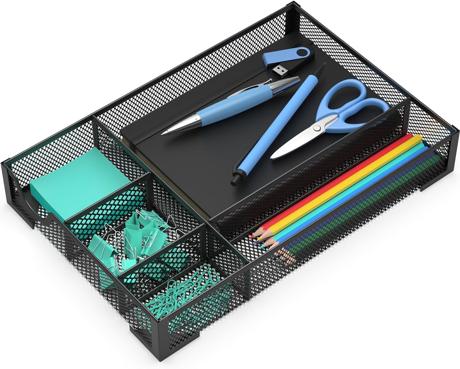 - Metal Construction: Made from high-quality metal, this desk drawer organizer is built to last. Comes with 4 cushion sponge pads on the bottom to keep it antiskid and stable.