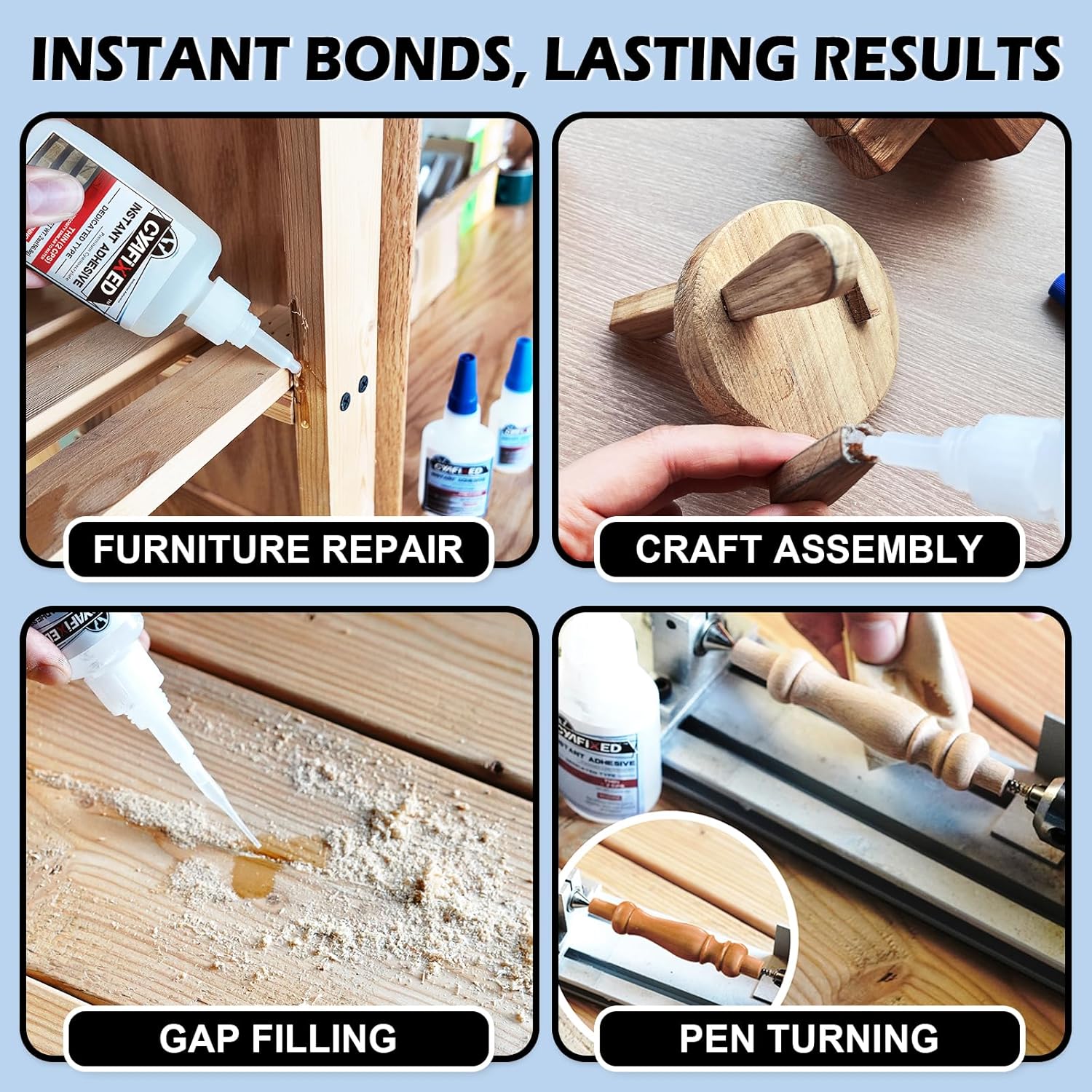 - THE ESSENTIAL GLUE FOR WOODWORKERS: CYAFIXED Thin Viscosity Super CA Glue, cures in 3-10 seconds, has a viscosity of 2CPS (similar to water), and has amazing fluidity and permeability. Commonly used for wood filling, wood grain repair and wood reinforcement.