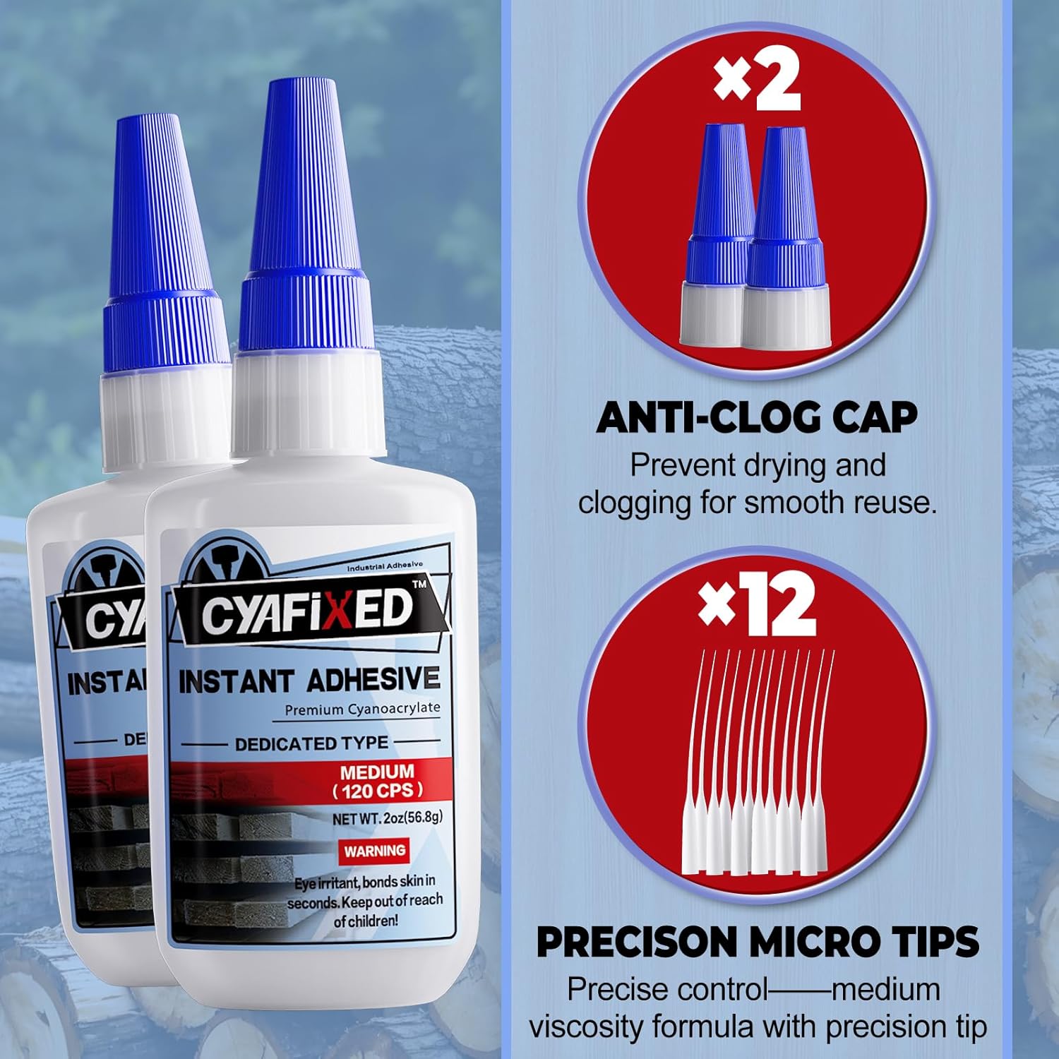 - 🧪Precision Micro-Tip Accessories: The wood CA glue with 12 Micro-Tip accessories enables accurate, controlled application for detailed wooden crafts bonding and woodworking, making it perfect for precise contronl. Ideal for every wood bonding with a clean and mess-free application.