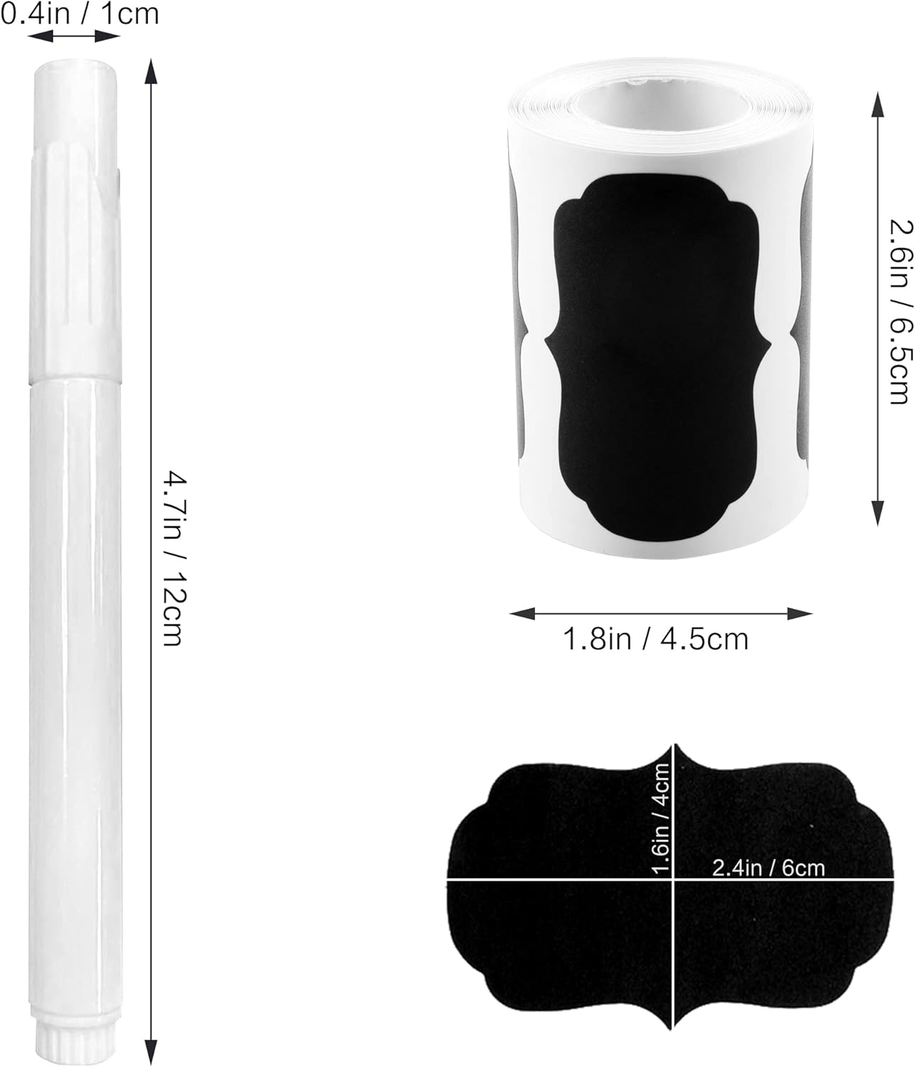 - 📣️Dimensions of Labels & Pens: SWISION strange removable sticker labels size is 2.4(L) x 1.6(W) inches, liquid white chalk pen size is 4(L) x 0.8(W) inches. Reasonable size let you can cut these blackboard labels into different small shapes.