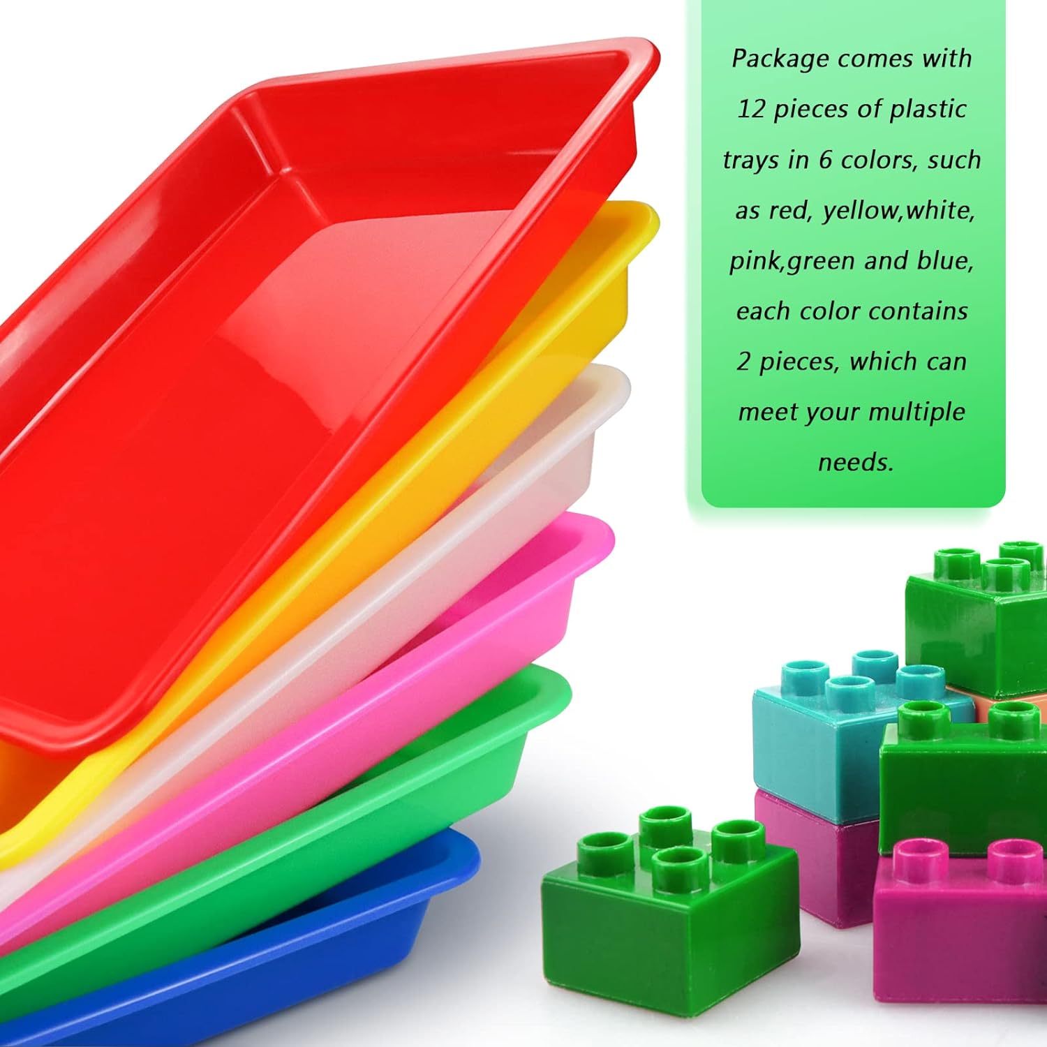 - 12 Art Trays: Package includes 12 pieces activity trays, 6 different colors including white, red, yellow, blue, green, purple, 2 of each color.