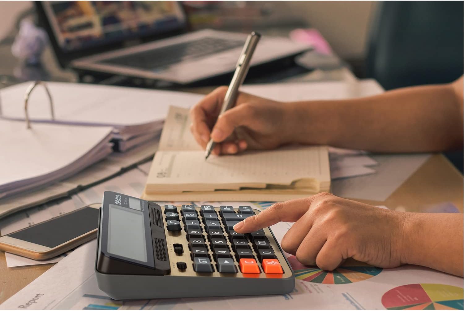- 【Large Accounting Calculator】Silver panel with orange,blue and gray color buttons,vibrant color matching.The functions on the panel meet the needs of your accounting work and daily used.