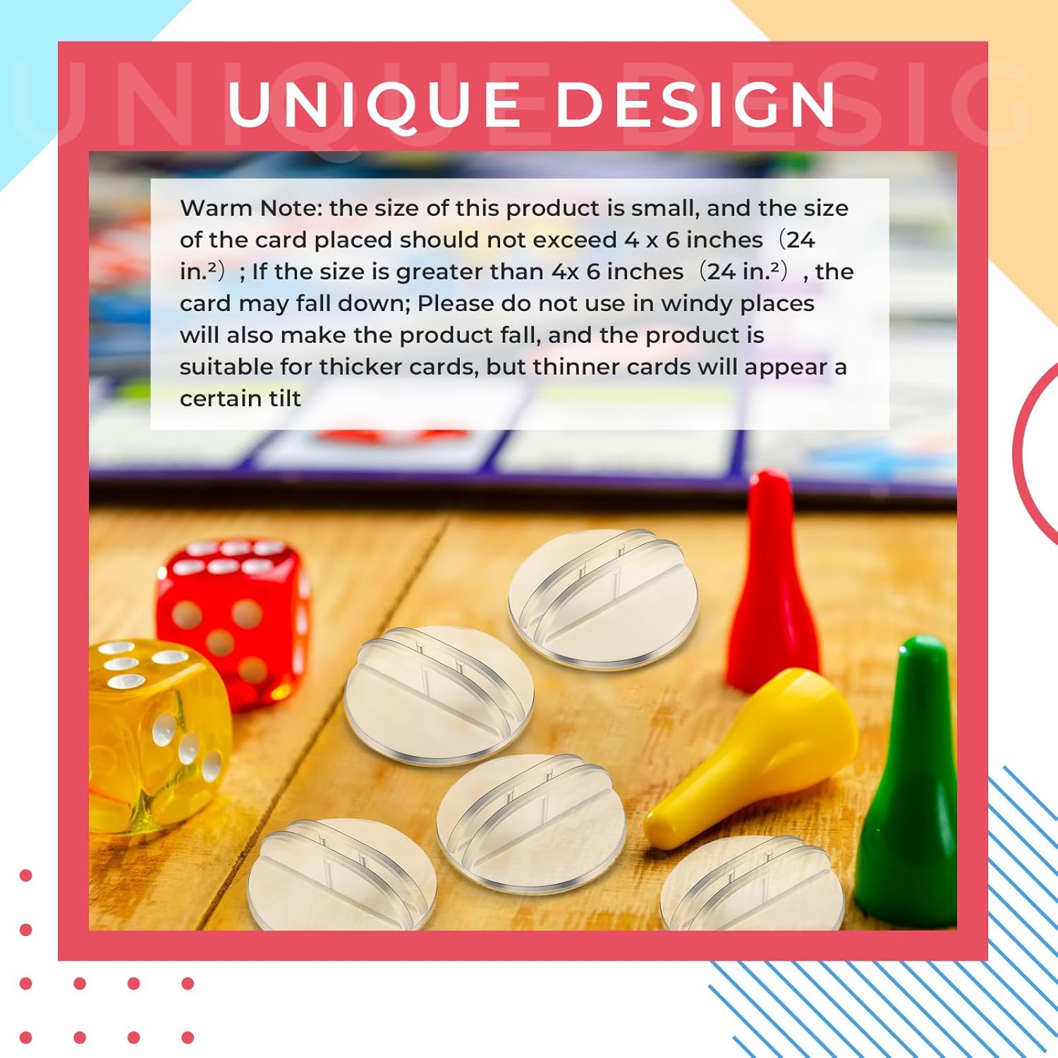 - Round Base: our translucent paper miniature bases are designed in round base, can be placed smoothly on the table, not easy to slip, to hold your card firmly; The circular base is 1 inch, the slot width is 0.08 inches, and the slot depth is 0.3 inches. The maximum thickness of the cards that can be held is 0.08 inches. If there are too few cards or they are too thin, the cards will not be held firmly.