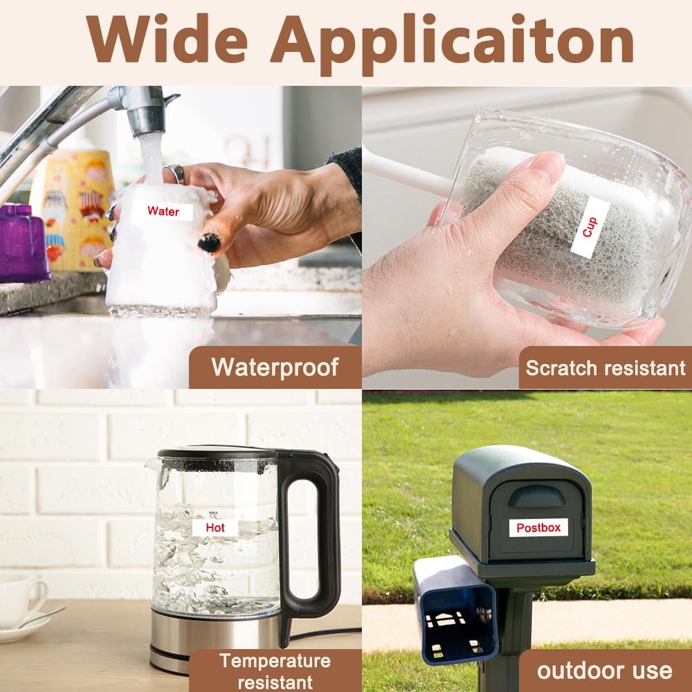 - Product features : Split back, water resistant, fading resistant, abrasion resistant, temperature resistant, strong adhesive. This compatibel 12mm tze-232 Red on White label tape is suitable for indoor and outdoor use