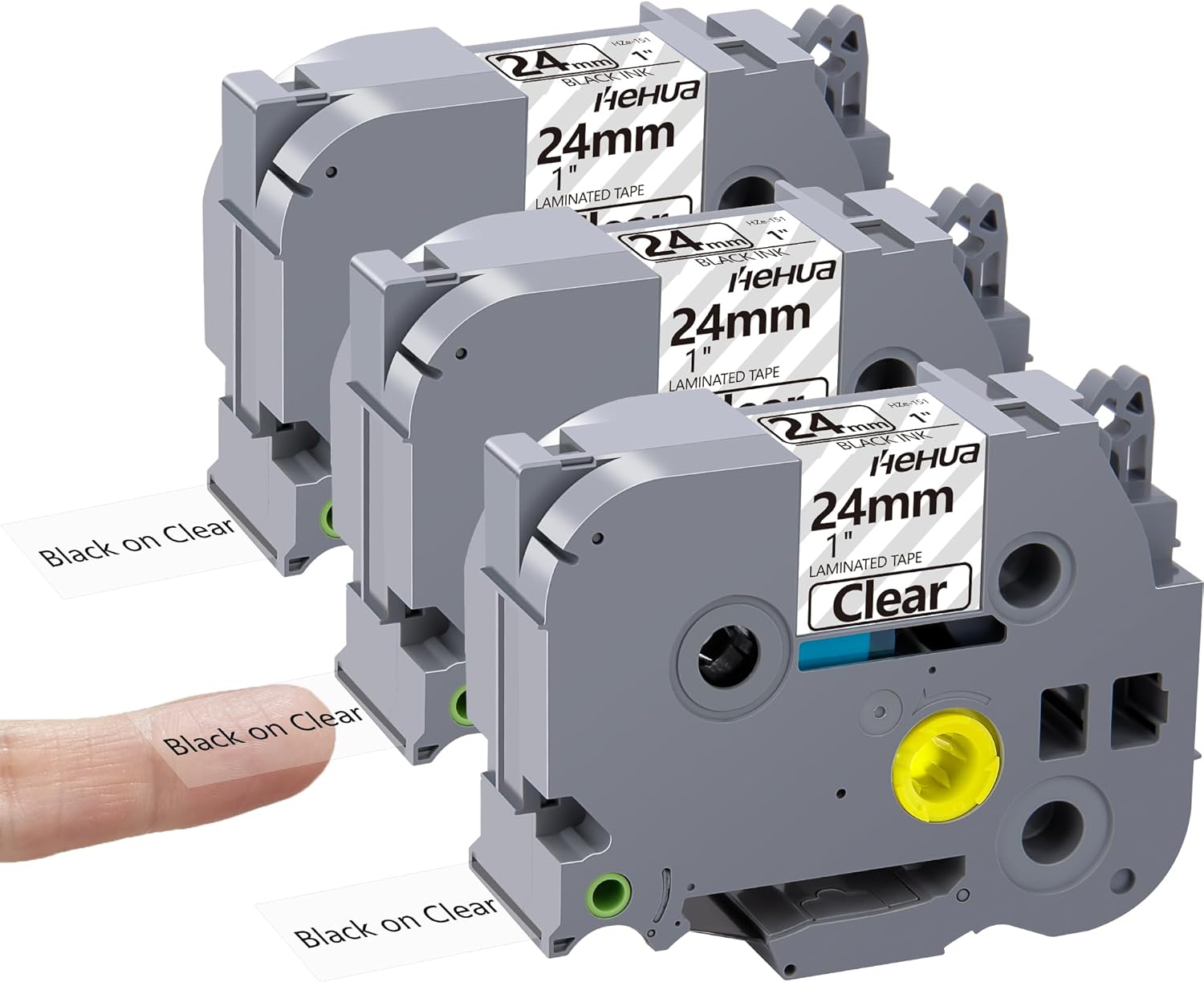 Hehua Tze Tz Tape 24mm 0.94 Laminated Clear Tape Compatible for Brother P-Touch TZe-151 TZe151 TZ-151 TZ151 for Ptouch PT D600 D610 P710bt, 1'' x 26.2ft Black on Clear, 3 Pack