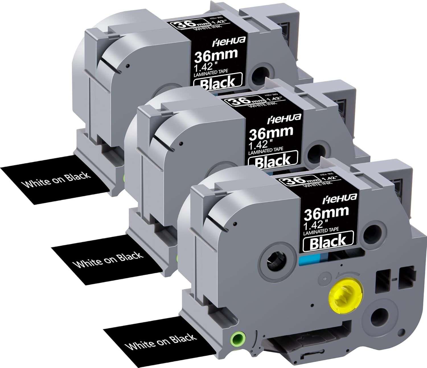 Hehua Tze Tz Tape 36mm 1.4 inch Laminated Black Tape Compatible for Brother P-Touch TZe-365 TZe365 TZ-365 TZ365 Label Tape for Ptouch PT 3600 530, 1.4'' x 26.2ft White on Black, 3 Pack