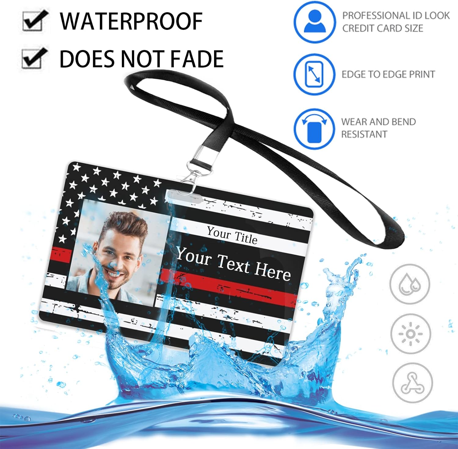 Custom Id Badge, Personalized Employee Photo Identification Card with Lanyard, Durable ID Card for Office Worker Doctor Nurse Student-Horizontal-Template1