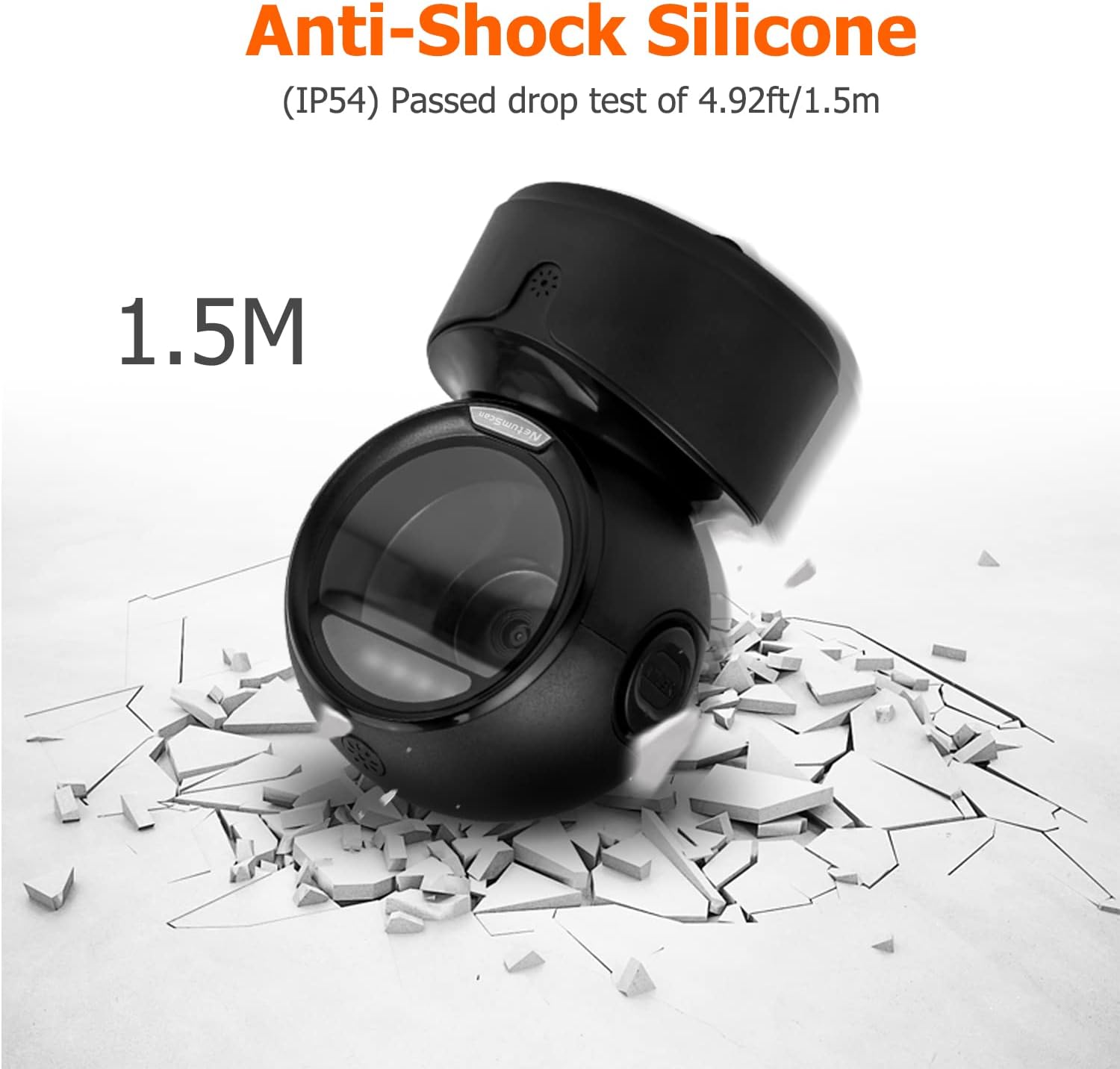 - ➽【Non-slip Base and Anti-shock Design】Our Handsfree Omnidirectional Barcode Scanner can be directly placed on the desk, the anti-slip base makes it more stable, Built-in anti-vibration system can avoid damage while falling from the height of 4.92 feet. IP54 technology protects the wireless barcode scanner from dust.