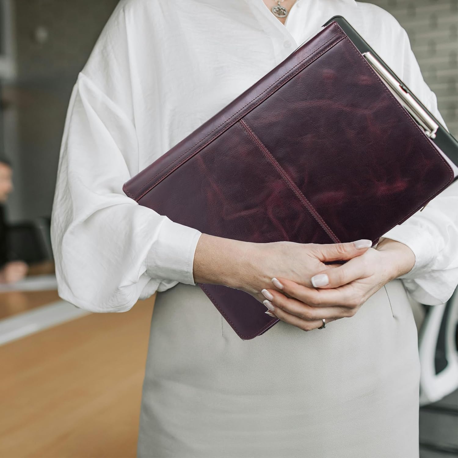- Premium Handmade Oil-tanned Leather: Compared to Crazy Horse leather, oil-tanned leather is smoother and less prone to scratches. The oils and waxes in the leather allow it to darken and become richer in color as it ages, giving it a characterful and vintage appearance. Our handmade full-grain leather portfolio exudes sophistication, with its rich and natural patina, making it a classic and luxurious accessory for professionals.