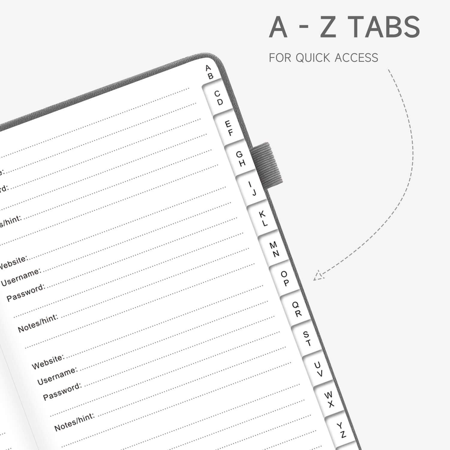 Password Book with Alphabetical Tabs – Hardcover Internet Address & Password Organizer – Password Keeper Notebook for Computer & Website – 5.2 x 7.6" Log-in Password Journal w/Thick Paper (Grey)