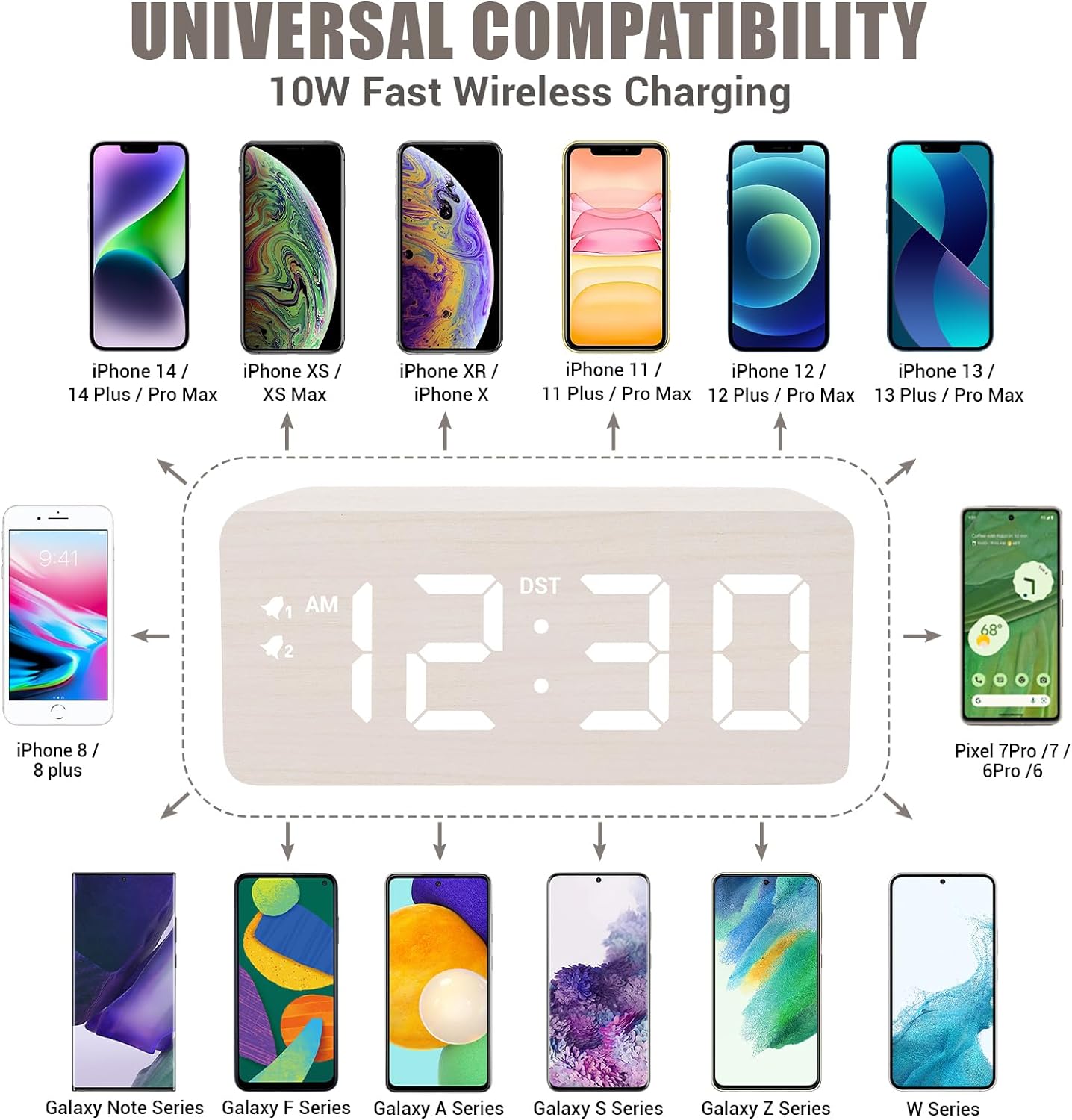 - ⏰【10 Faster Faster Wireless Charging】- Compared with alarm clocks on the market with only 5W wireless charging, this wooden alarm clock is upgraded to 10W weireless charging for faster charging, saving time on charging your phone.It also features a USB port to charge other electronic device.