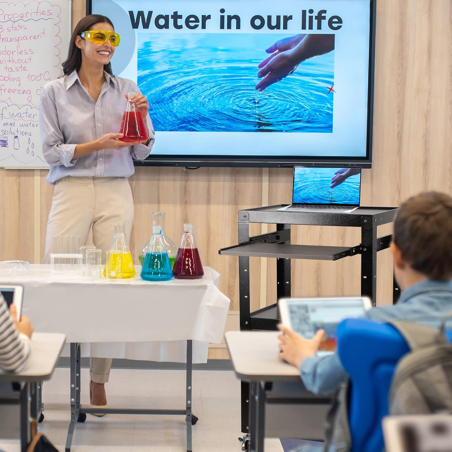 - Built-In Power Strip for Convenient Access: A side power strip offers easy access to outlets, making it effortless to connect power tools, laptops, and other electronic devices. This mobile computer cart boosts productivity by keeping devices powered and ready to go.