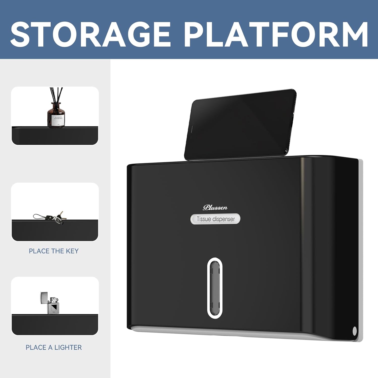 Paper Towel Dispenser Wall Mount, Adhesive No Drilling Multifold Trifold C Fold Commercial Hand Towel Dispenser,Black