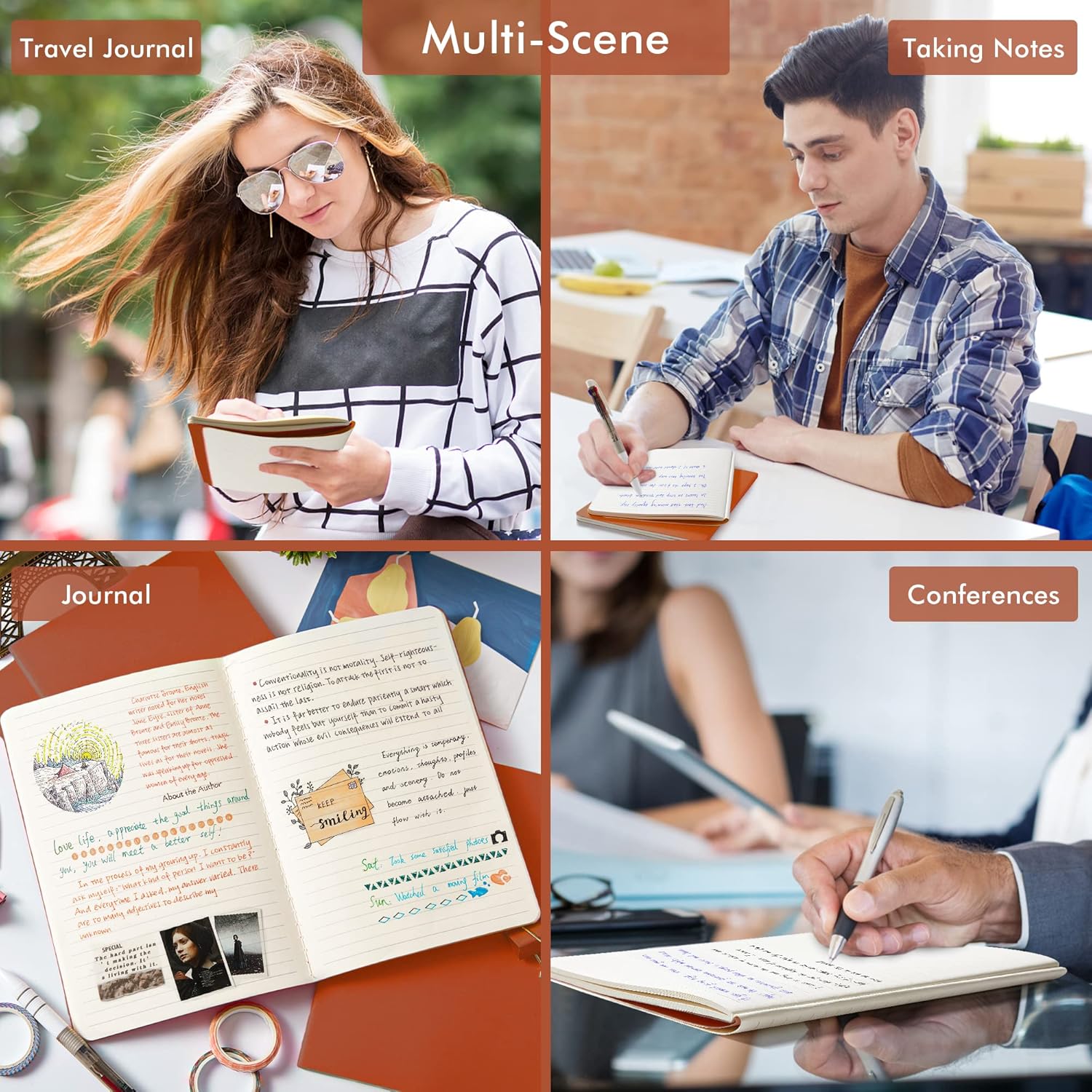 - Use it as a travel journal. Travelers can use it as travel journal to write down precious moments and thoughts. Each measures 8.2” x 5.5”, which is convenient to carry in hand or just put it in the bag.