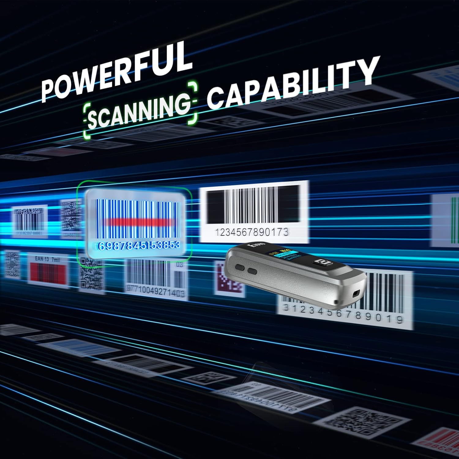 - Bright 1" Color Lcd Display, Say Goodbye To User Manual: Unlike an ordinary barcode scanner with a display, you can not only get the date & time, remaining battery, sound on/off, Bluetooth/2.4G connection status information from the screen but also set some common functions directly on the barcode scanner without scanning the set code in the manual. From now on, you no longer have to carry the user manual every day or be afraid of losing it