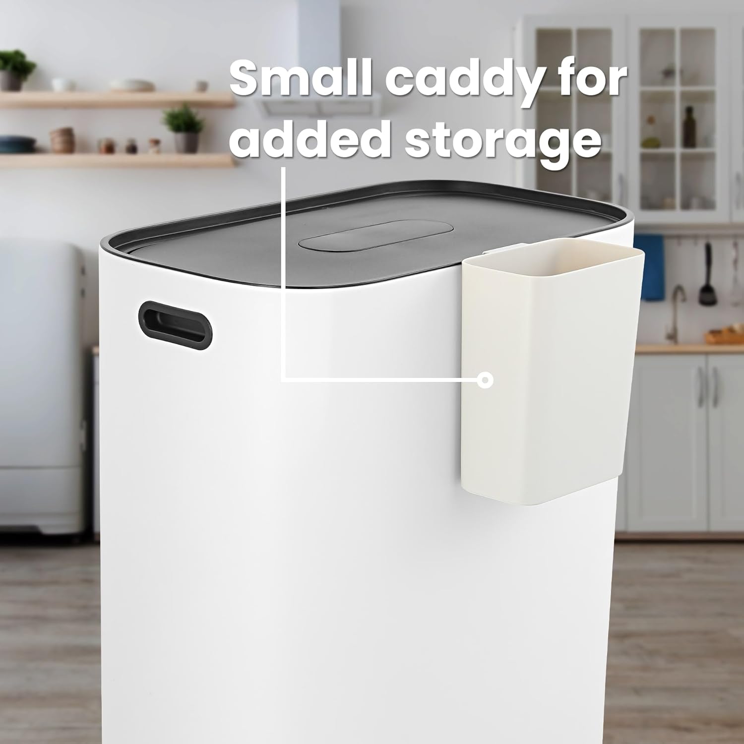 happimess HPM1014C Beni Kitchen 16-Gallon Double-Bucket Step-Open Trash Can with Soft-Close Lid, Modern, Minimalistic, Fingerprint Proof for Home, Kitchen, Laundry Room, Office, Bathroom, White