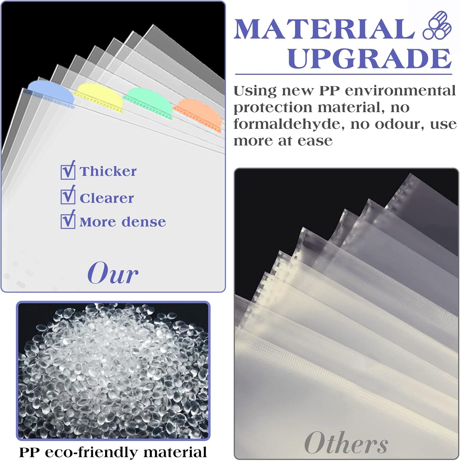 5 Set of 40 Pack A4 Plastic Sleeves Binder Index Dividers Pocket Dividers for 2/3/4 Ring Binder with 8 Tabs,Clear Plastic Sheet Protectors Paper Organizer for School Home Office