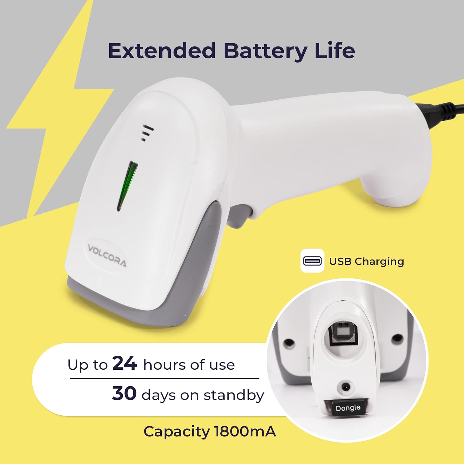 Volcora Wireless Bluetooth Barcode Scanner, QR Code Scanner, USB Portable Handheld Scanners w/Stand Connect w/Tablet/Phone/PC, 1D & 2D Inventory Scanner, Symbol Barcode Scanner for Retail & Warehouse