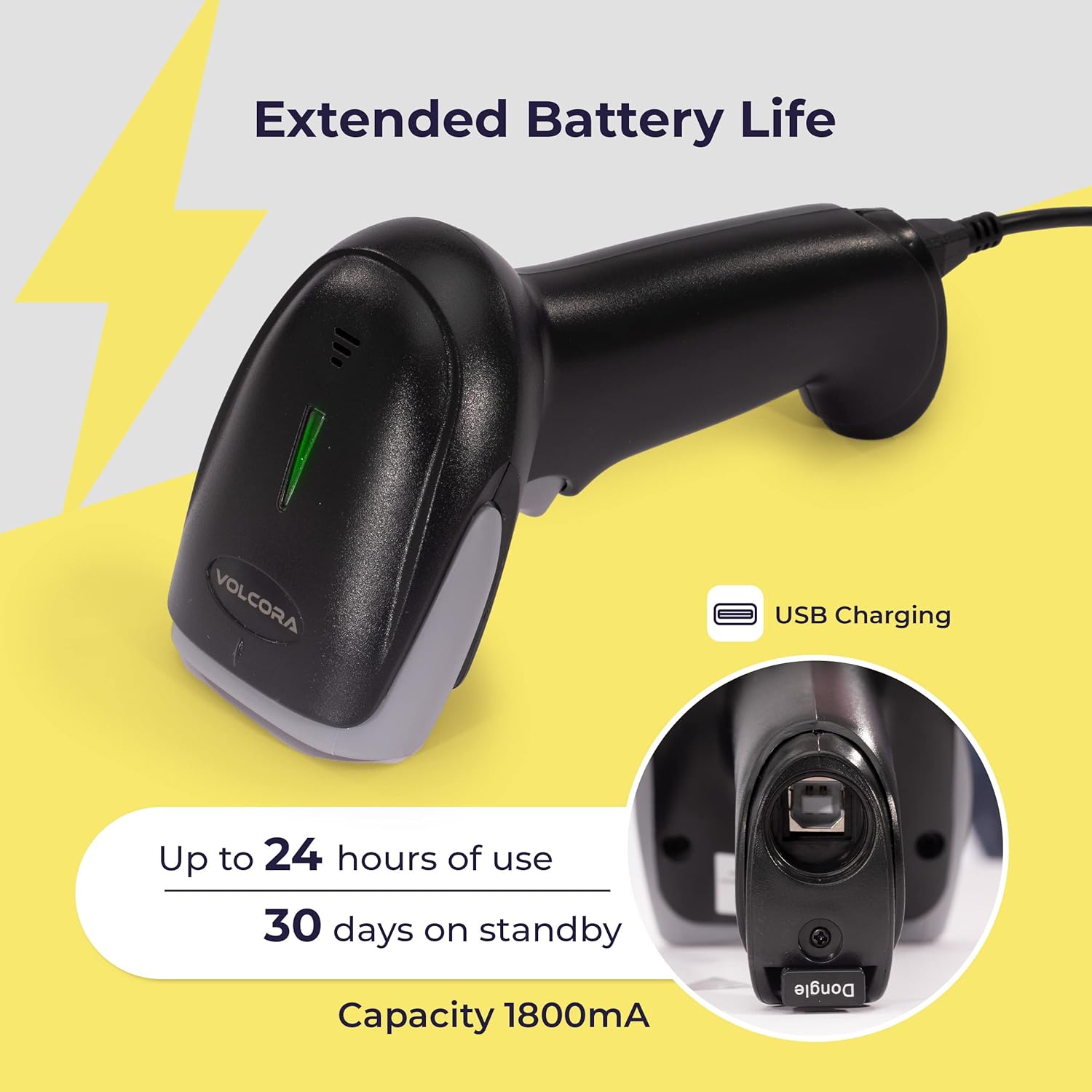 Volcora Wireless Bluetooth Barcode Scanner, QR Code, USB Portable Handheld w/Stand Connect w/Tablet/Phone/PC, 1D & 2D Inventory, Symbol Barcode Scanner for Retail & Warehouse, Black