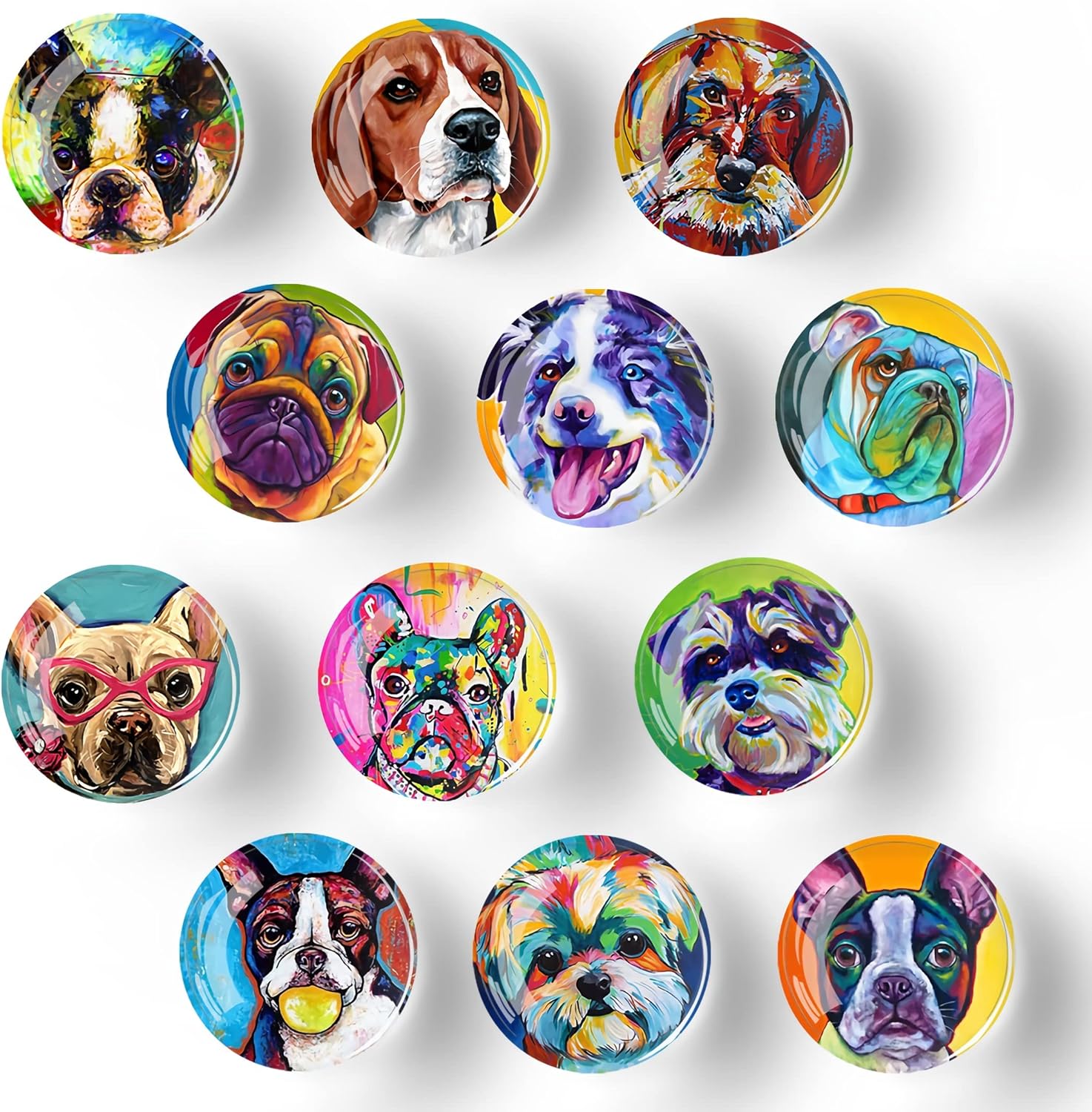 12Pcs Glass Refrigerator Magnet Fridge Sticker,Oil Painting Dog Fridge Magnets Decoration for Crafts,Strong Fridge Magnets for Kitchen, School,Office Whiteboard, Cabinet and Dishwasher