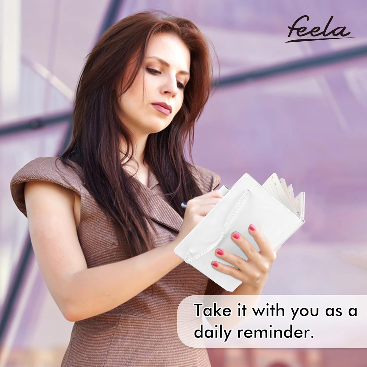 feela 12 Pack Notebooks Journals Bulk, Hardcover Notebook Classic Ruled Lined Journals with Pen Holder for Women Girls School Business Supplies, with 12 Black Pens, 120 GSM, 5.1”x8.3”, A5, White