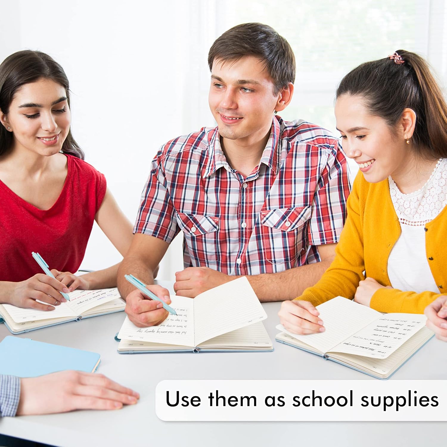 - Feela 8 Pack Classic Ruled Notebooks contains 8 light blue ruled sturdy cover notebooks and 8 Black Retractable Pens. Each of the notebooks measures 8.3” x 5.1”, which is perfect to carry and easily held by young girls and boys. These black cute pens are customized to be placed in the pen holder, which is pretty convenient.