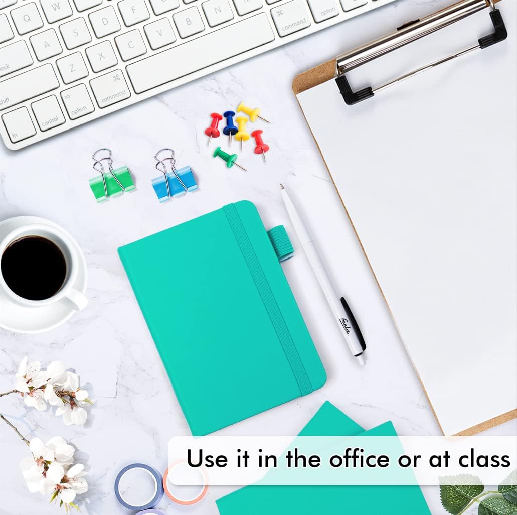 feela 6 Pack Pocket Small Notebooks Bulk, Mini Cute Memo Notepads Hardcover College Ruled Lined Journals with Pen Holder for Women Girls Office School, with 6 Black Pens, 3.5”x 5.5”, A6, Aqua