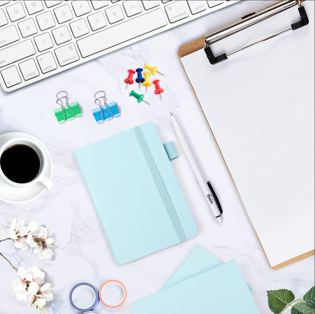 - Feela 15 Pack College Ruled Sky Blue Notebooks contains 15 college ruled sturdy cover notebooks and 15 Black Retractable Pens. Each of the notebooks measures 3.5” x 5.5”, which is perfect to carry and easily held by young girls and boys. These black cute pens are customized to be placed in the pen holder, which is pretty convenient.