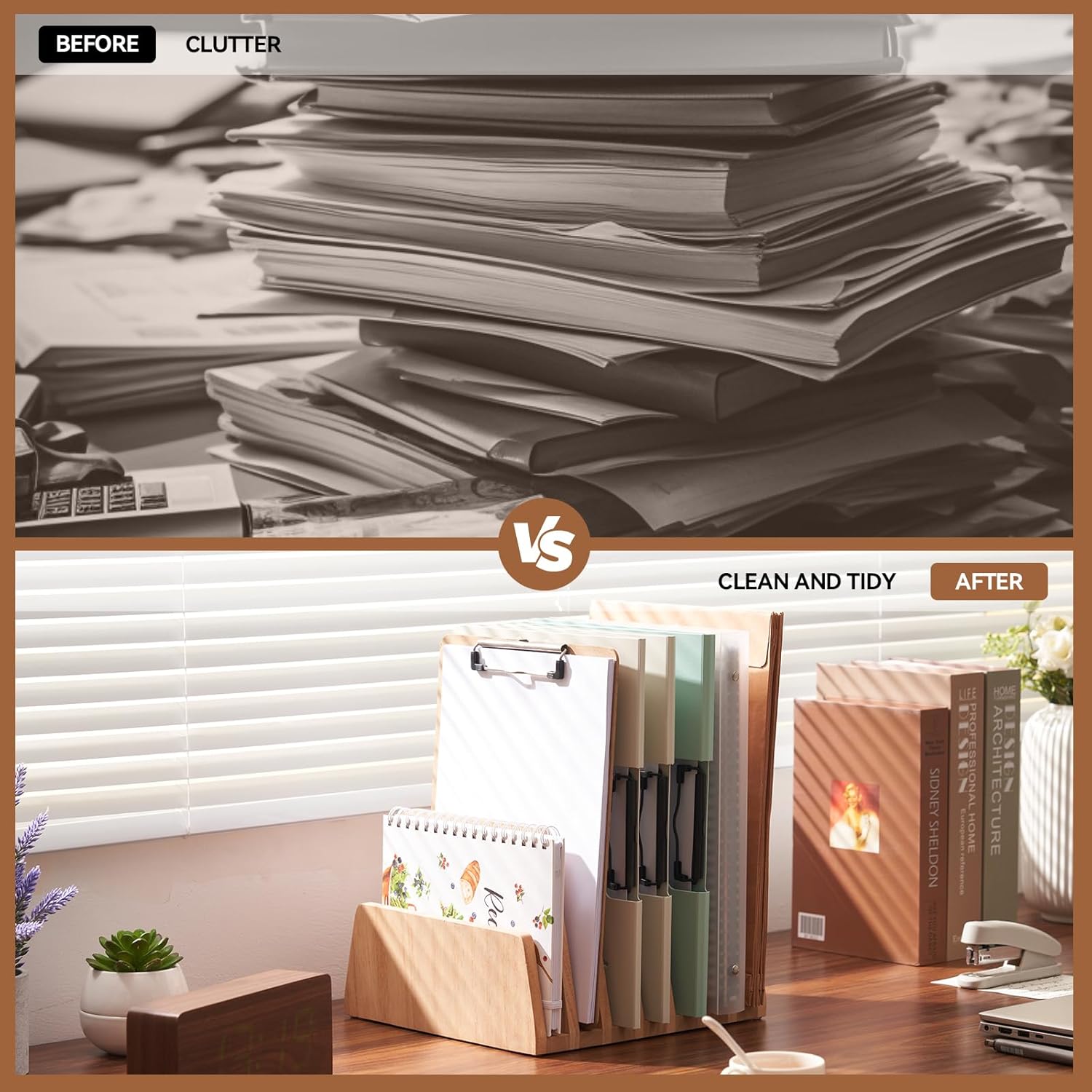 - [FUNCTIONAL & 7 SLOTS]: The desktop paper organizer easily holds all standard size mail, file folders, papers, books, documents for home and office.