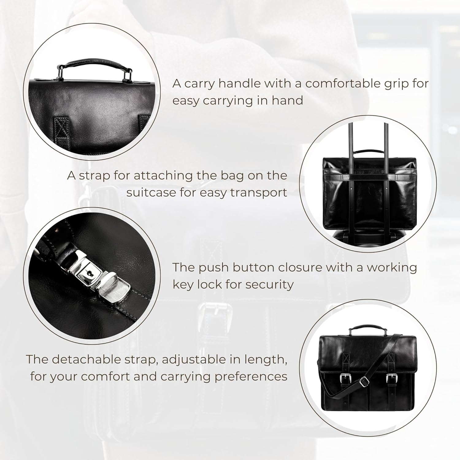 Time Resistance Leather Briefcase for Men Handcrafted in Italy Full Grain Messenger Bag for Laptop