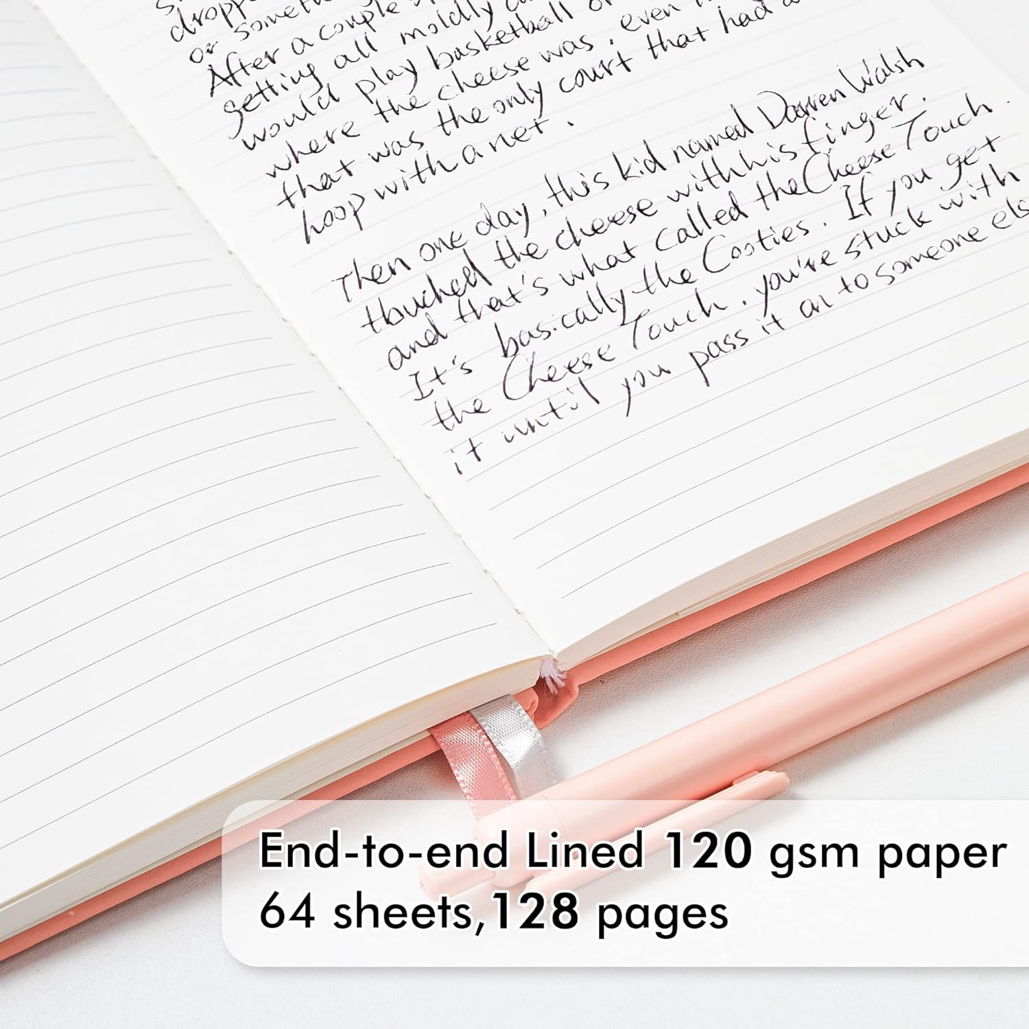 - These classic ruled notebooks are all blank inside with 128 lined pages (64 sheets), which would be convenient for daily usage. The hard cover journal has a water-resistant faux leather cover, round corners and bookmarks, which is designed to lay and open flat. There’s a “date/page” column on the top of every page. You can use it as a reminder to let you remember those important dates and find the page you want in a very short time.