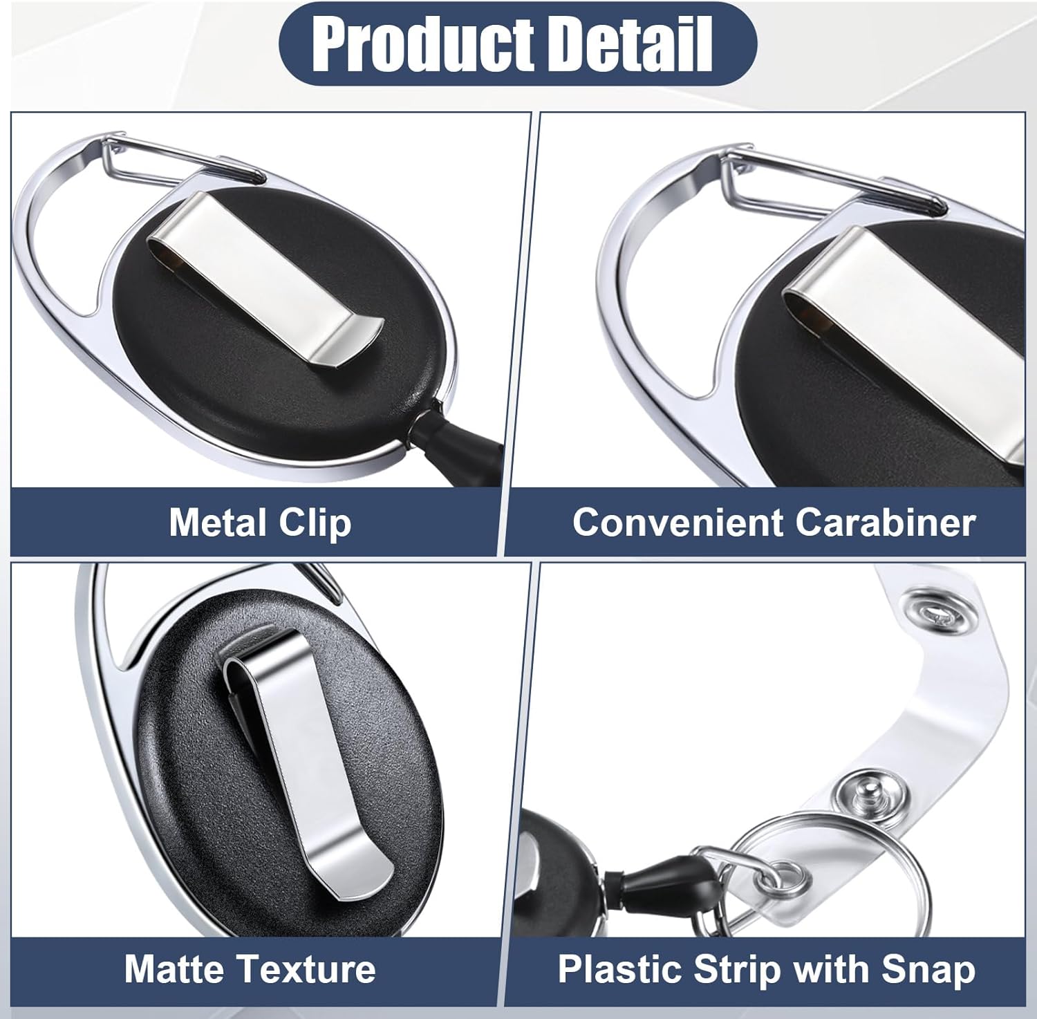 - Effortless to Use: retractable badge reels includes a spring clasp, plastic covers, retractable reel clip, stainless steel key ring for a more secure connection way to ensure fasten to your belt loops, straps, backpacks, bags effortlessly and quickly