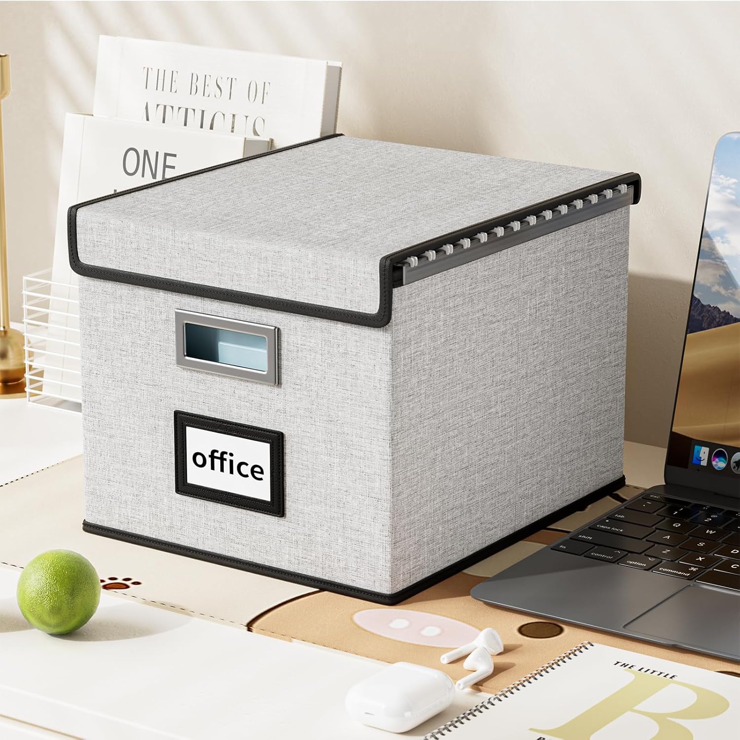 - Collapsible Multifunctional Filing Storage Organizer - The outer box with linen fabric can be dustproof, inside and the bottom support is made of thickened cardboard, which is environmentally friendly and not easily deformed. The cover with Velcro not only allows us to cover the file box easily, but provides more storage space for the file. It also acts as a small filing cabinet for tax documents, legal files and other documents storage. When we are not using it, we can fold it up to save space.