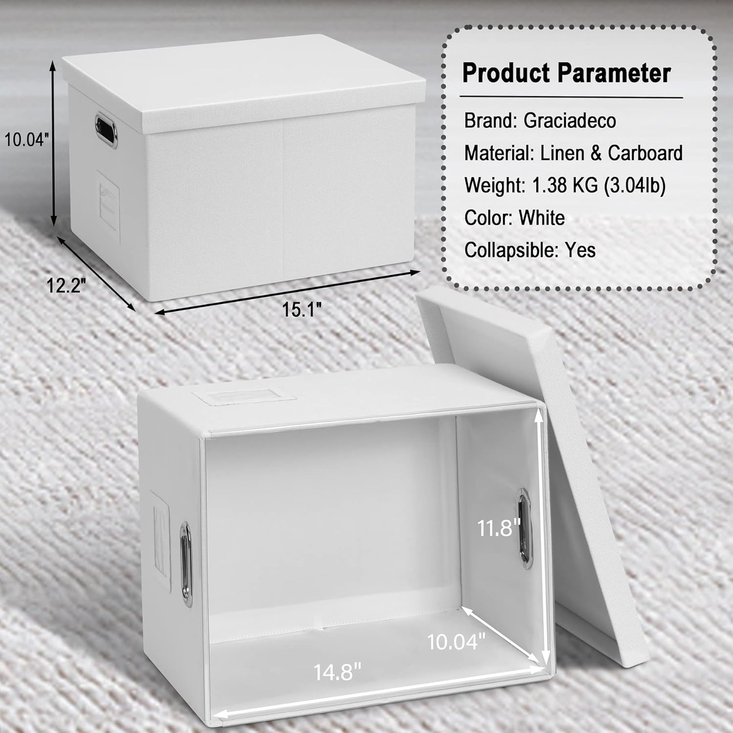 File Organizer Box, Collapsible Storage Filling Box with Lid for Letter Legal Size Hanging Folders Decorative Linen File Folder Box Document Storage Filing Bin, White 2 Pack