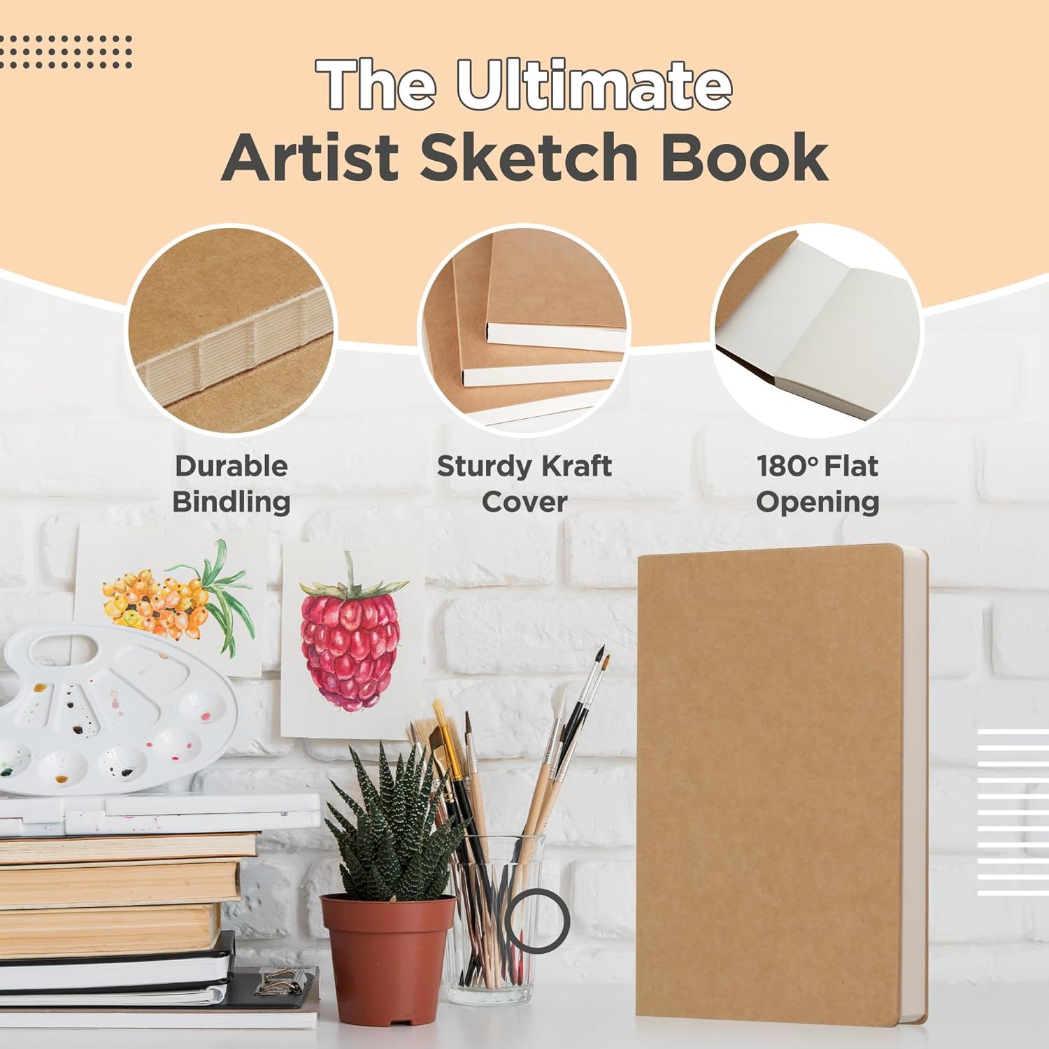 - 180 degree opening: This kraft sketch book opens up completely flat, providing you with no lumps or bumps in the paper you are trying to sketch on