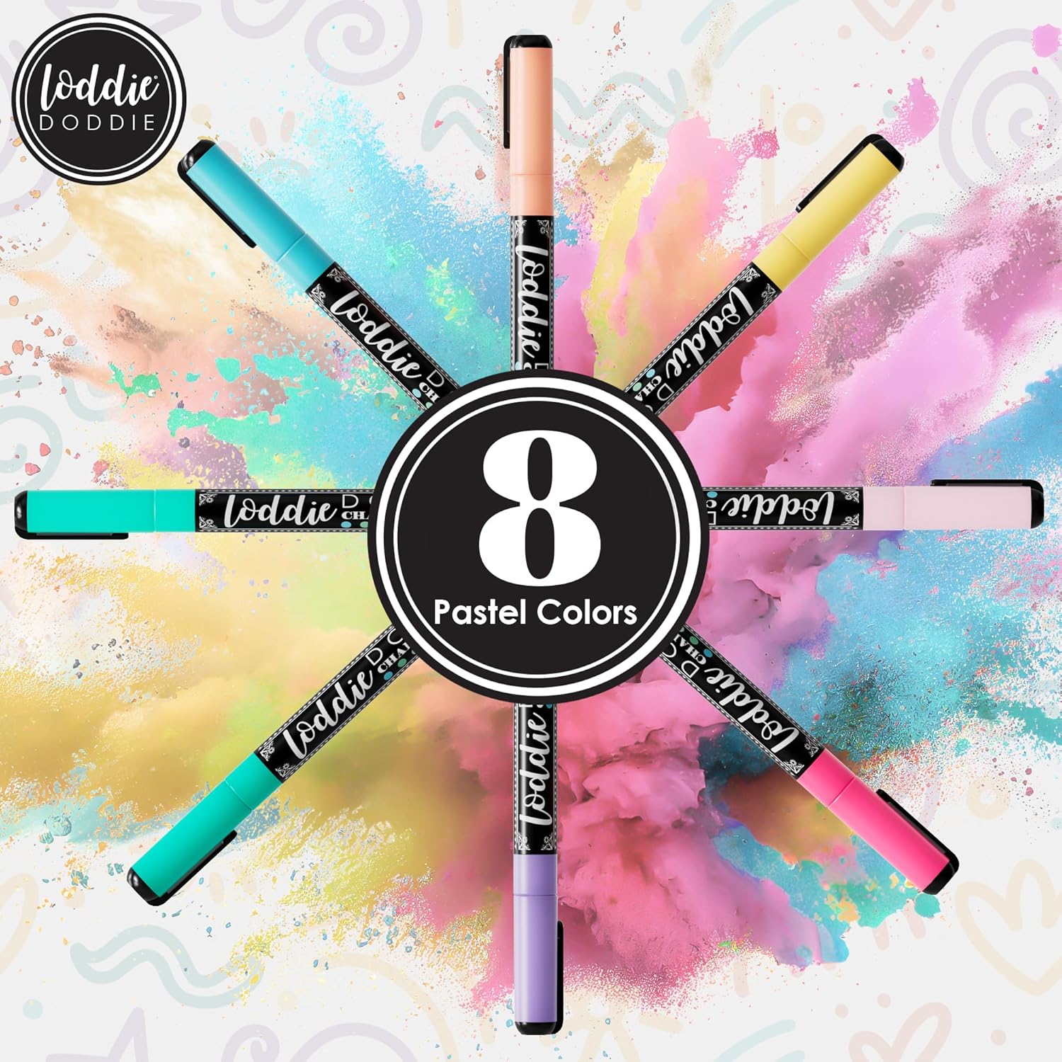 Loddie Doddie Liquid Chalk Markers Fine Tip - 8 Pack Macaron Pastel 1mm - Erasable Low-Odor Ink For Chalkboard & Dry Erase Markers - Non-Toxic Smudge-Proof