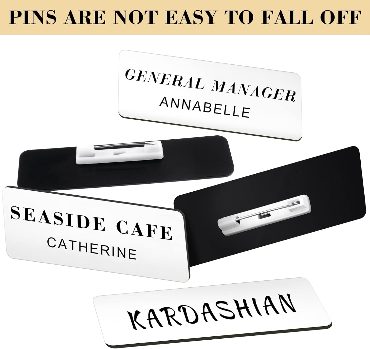 - Name Tags with Clips: on the back of the blank name tag, there is a clip; The pin makes it easy to wear and remove, practical and reliable, it won't come off easily; You can also store them easily when you don't use them