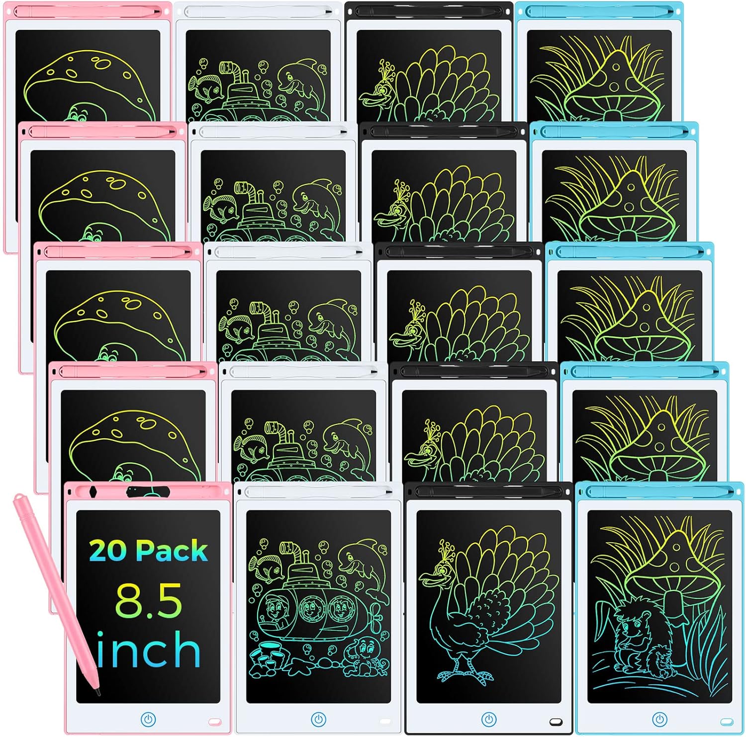 Zhehao 20 Pack LCD Writing Board for Kids, 8.5 Inches Doodle Reusable Screen Drawing Pad Erasable Painting Pads Educational Toy for 3-8 Years(Light Blue, Black, Pink, White)